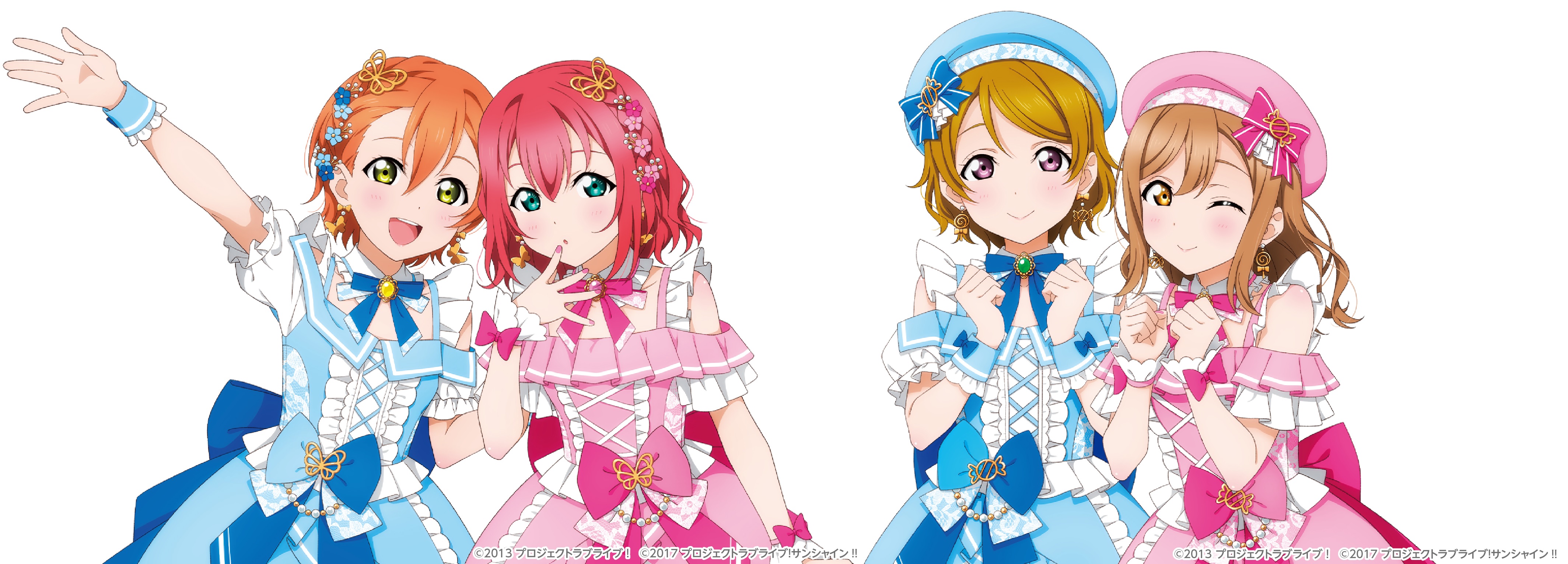 >>554795549>Rin and Ruby wearing butterfly ornaments and have flowers in their hair>Hanayo and Hanamaru wearing candy ornaments and doing the Ganbaruby poseThey're referencing each other :)