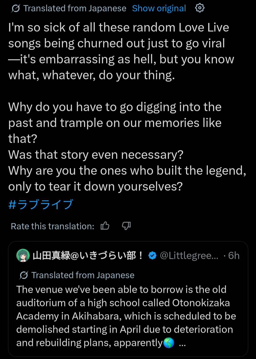 >>554758456What LL's management really wants is the revival of μ's, but that comes with a lot of sacrifices, so they settled for reviving A-RISE on μ's home.