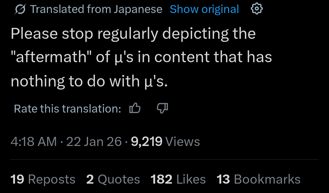 >>555094085Is Liella on vacation or something? They haven't done shit lately.