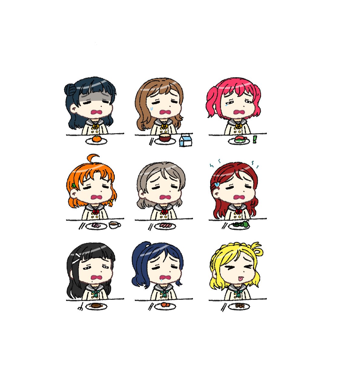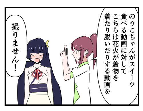 >You're right, Umi. Honoka and Hanayo weigh too much. They don't deserve to eat. Let's make them exercise until they burn out. If Hanayo starts crying, let's work her even harder to make an example of her to Honoka.