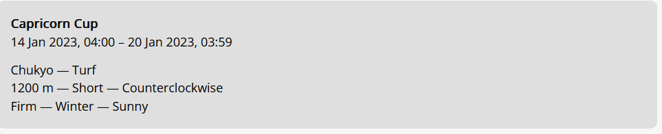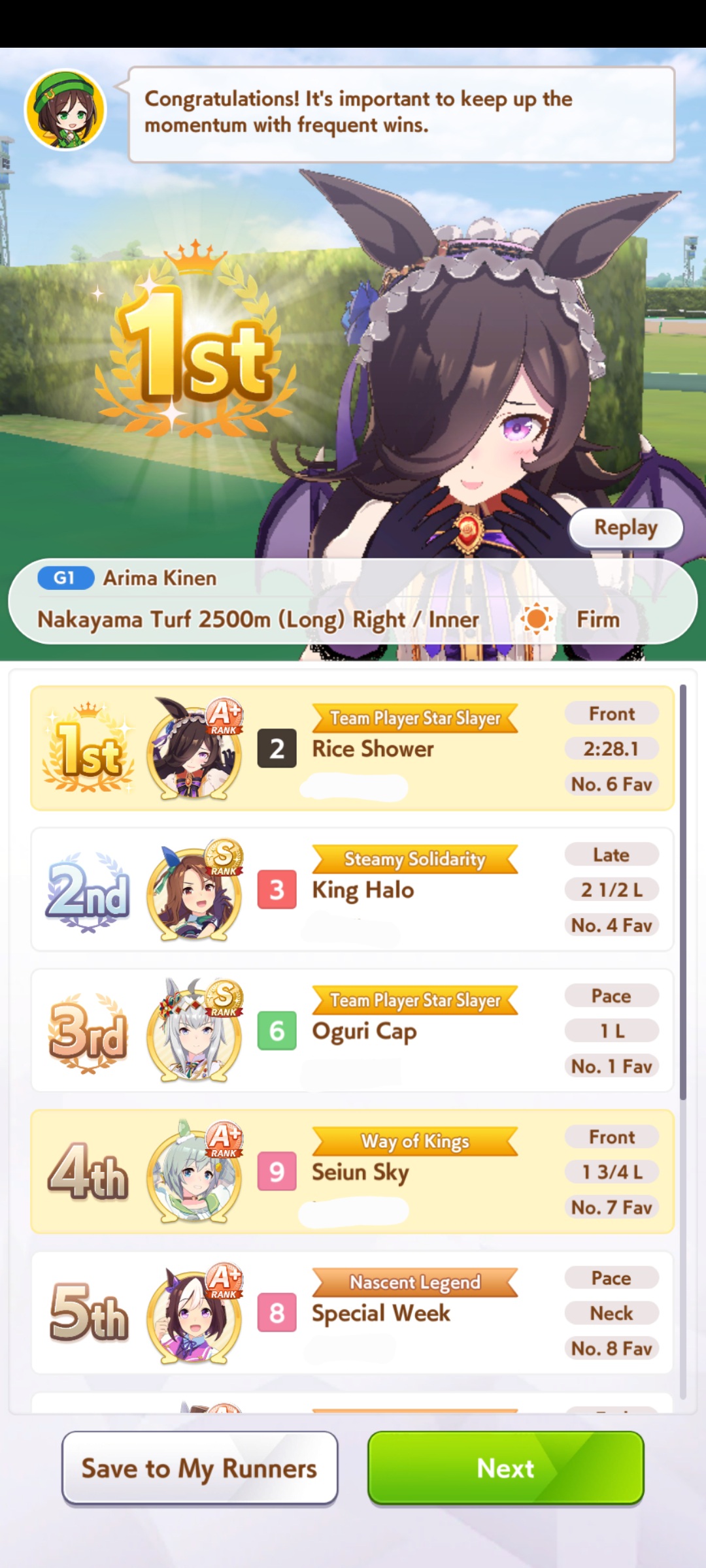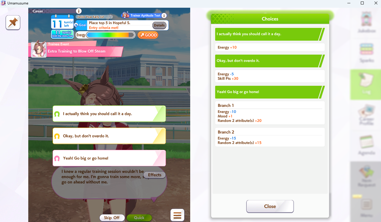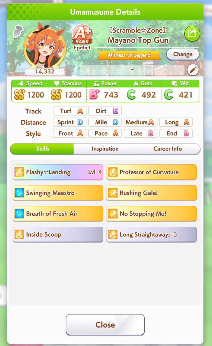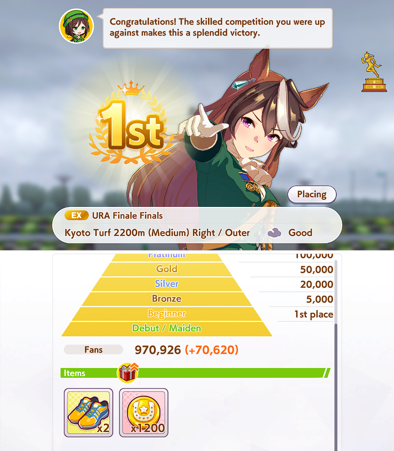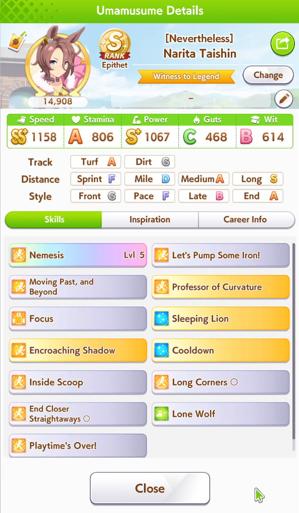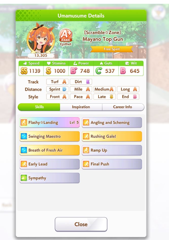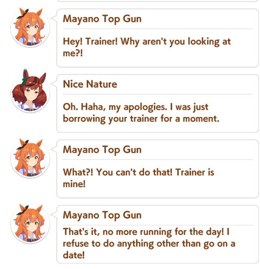 >>554772418of course>>554772471>forced rest for classic sprinters stakes for KS Miracle>UI literally only gives you the rest option and cancels all future planned races...https://umareader.idsmile.xyz/jp/character/1093/