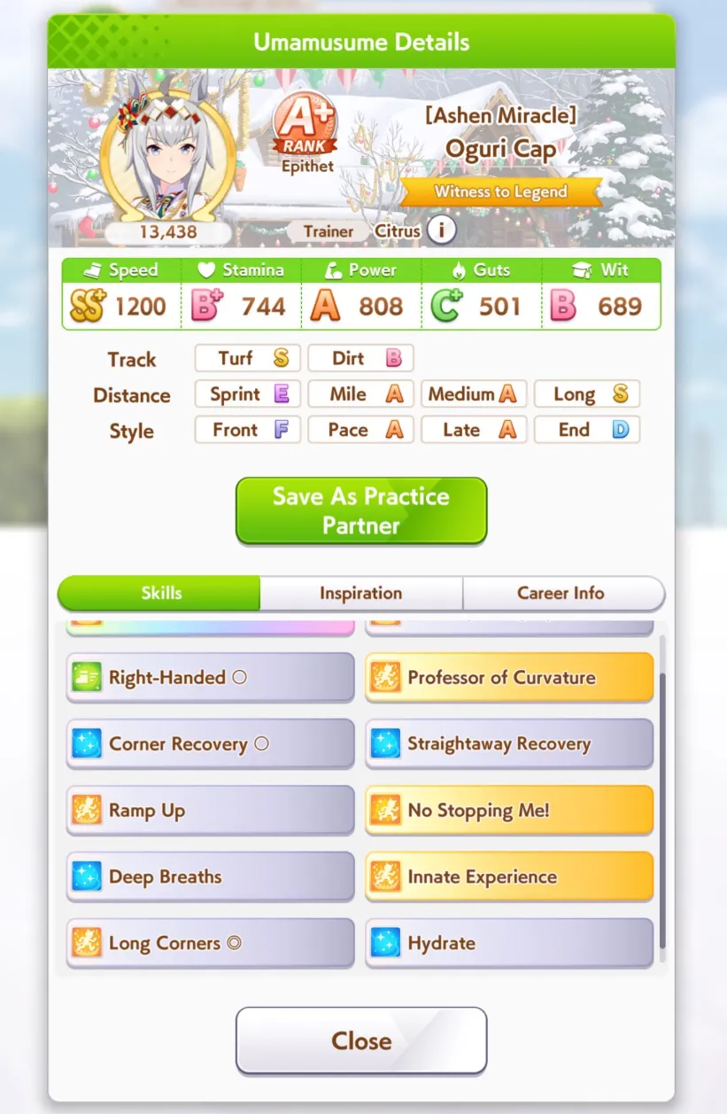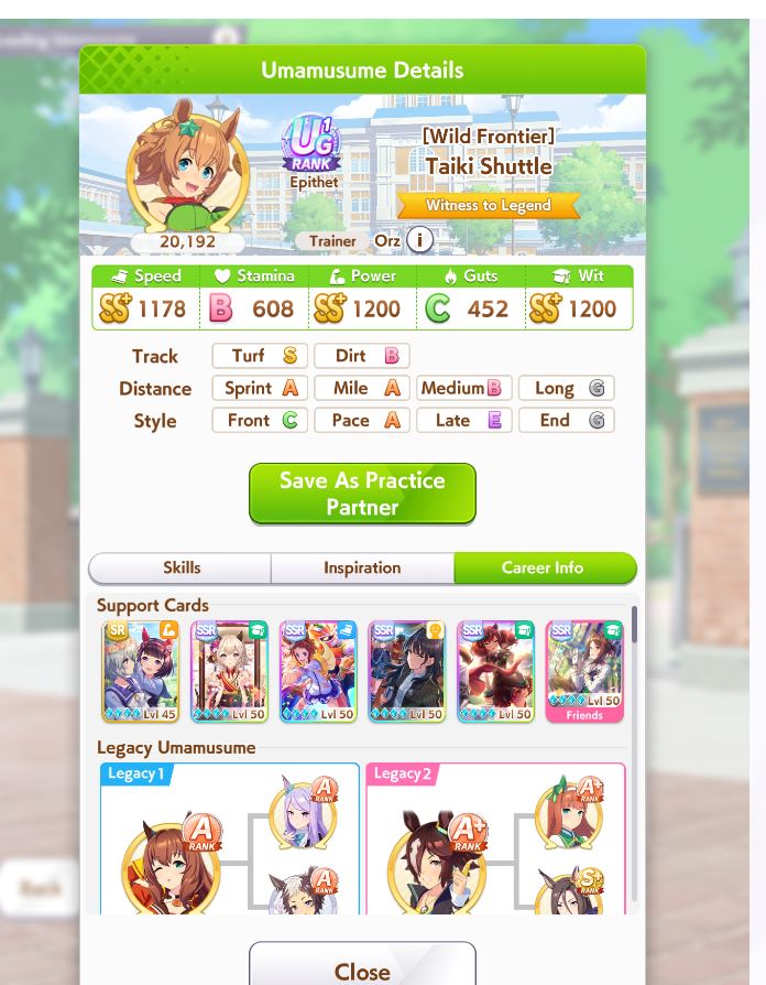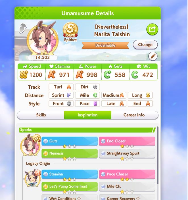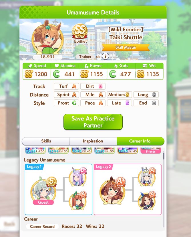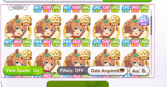 Lookingat the top Uma for the event, it's a taiki with 32 races under her belt in unity. How the fuck does that work? That's 32 turns you're not popping bubbles or even training. Huh?? How the fuck do you get SS in speed power and wit like that?
