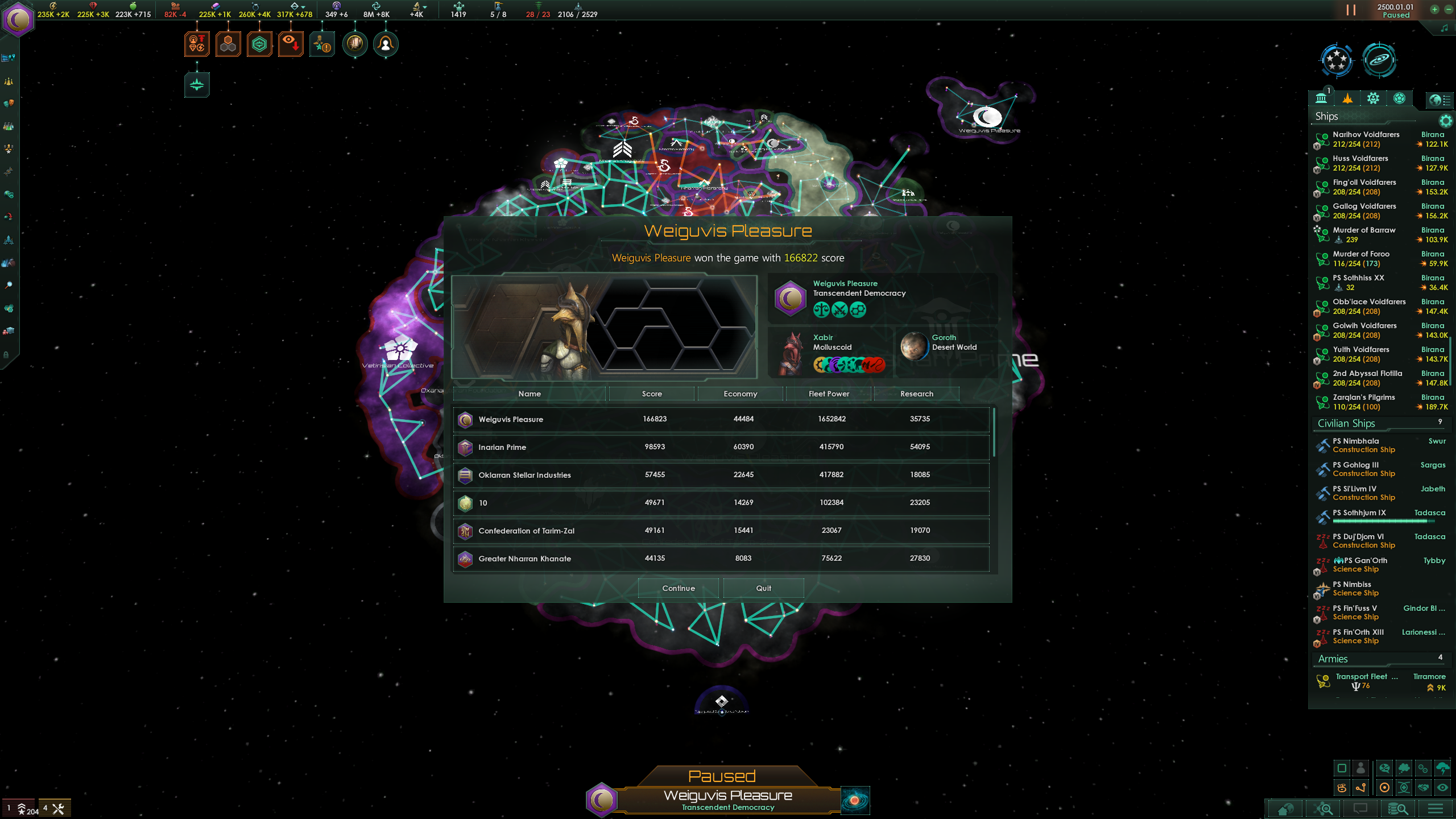 my determined assimilation empire got rolled by cetana. i couldnt even put a dent in her titan which was 17m with a 10m fleet. i took out her fleets before hand too. another problem was the faggy ai empires doing absolutely nothing and the side missions of whatever with convoys were camped in her own territory that i couldn't get it.gay.