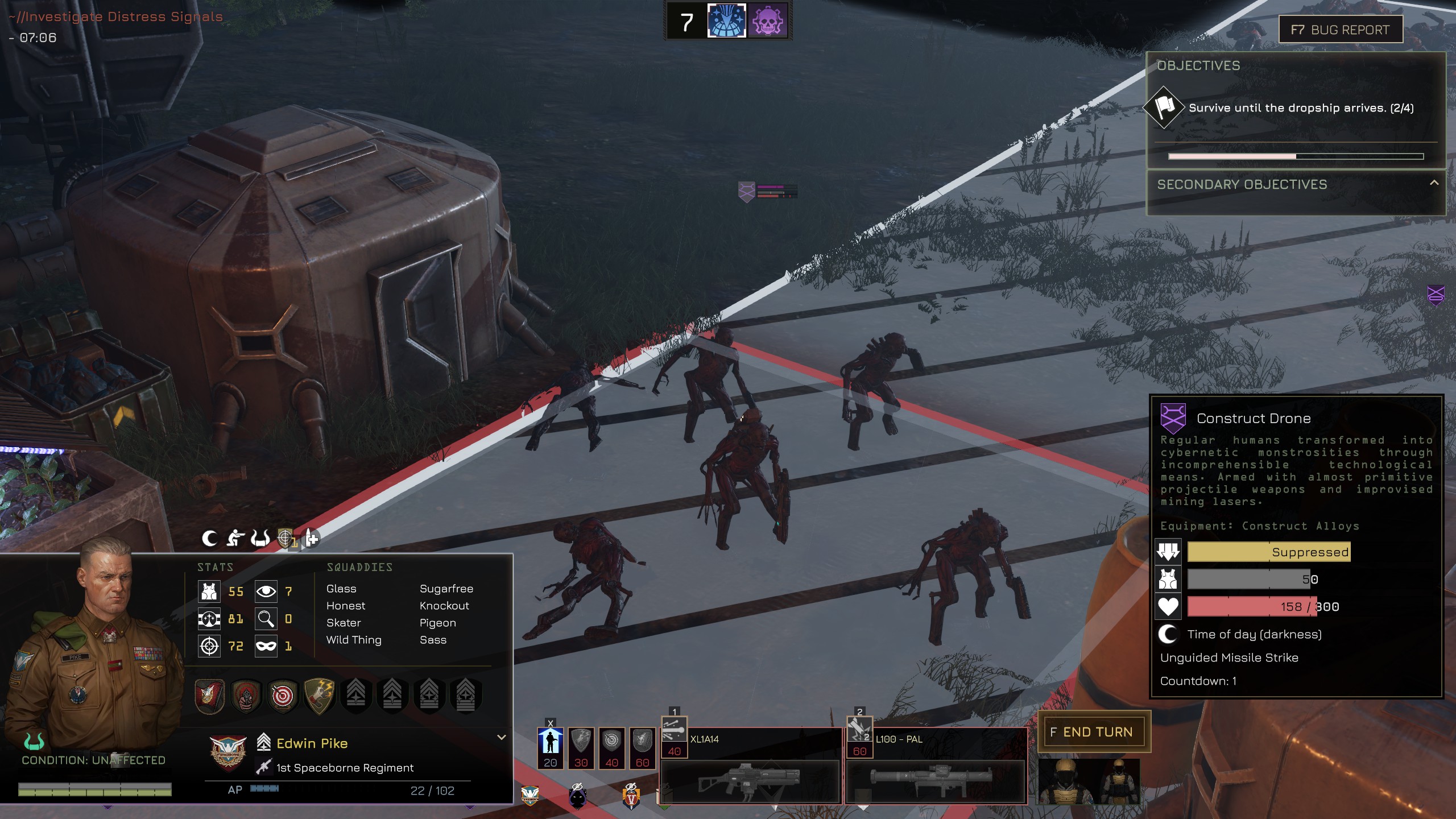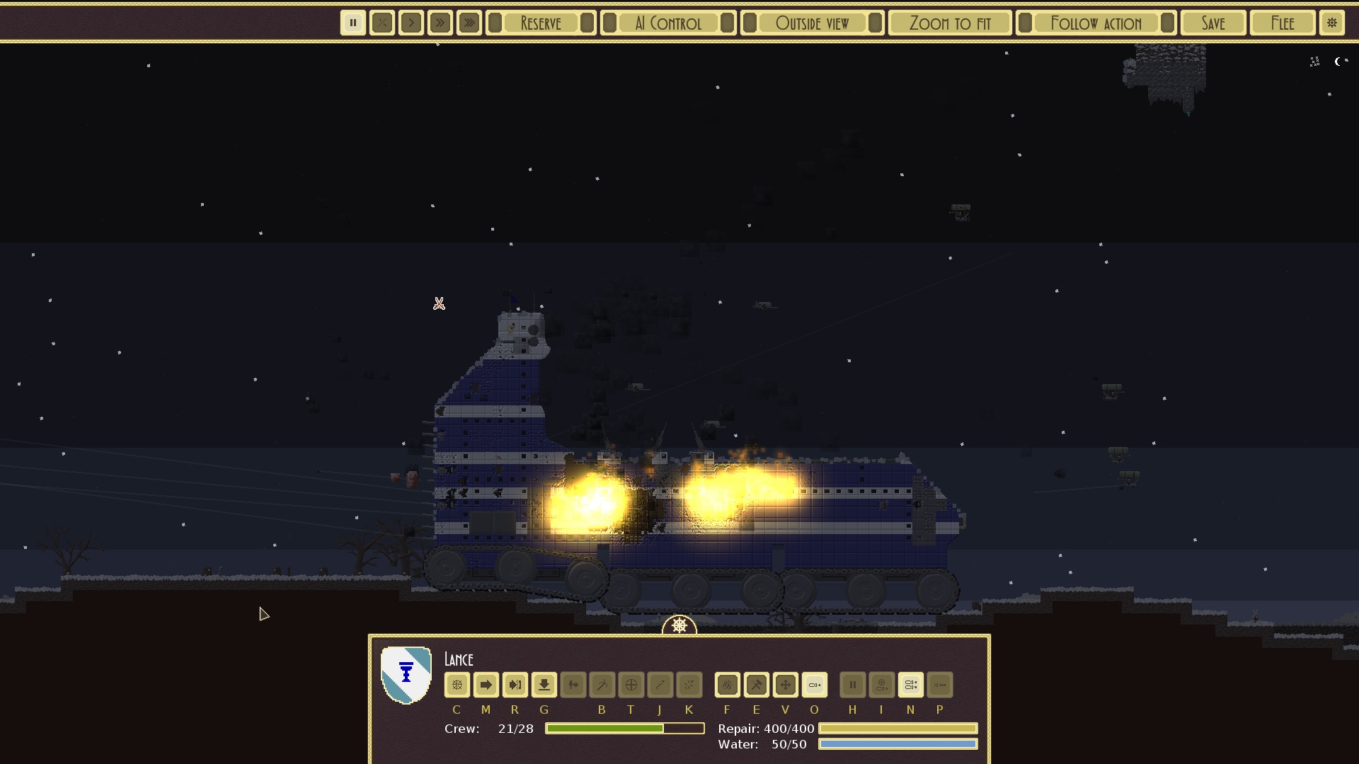 >>556507038Near-direct hit from air drop bomb took it down to a bit under half health and broke some internal system, so hopefully it won't fire for at least a turn.