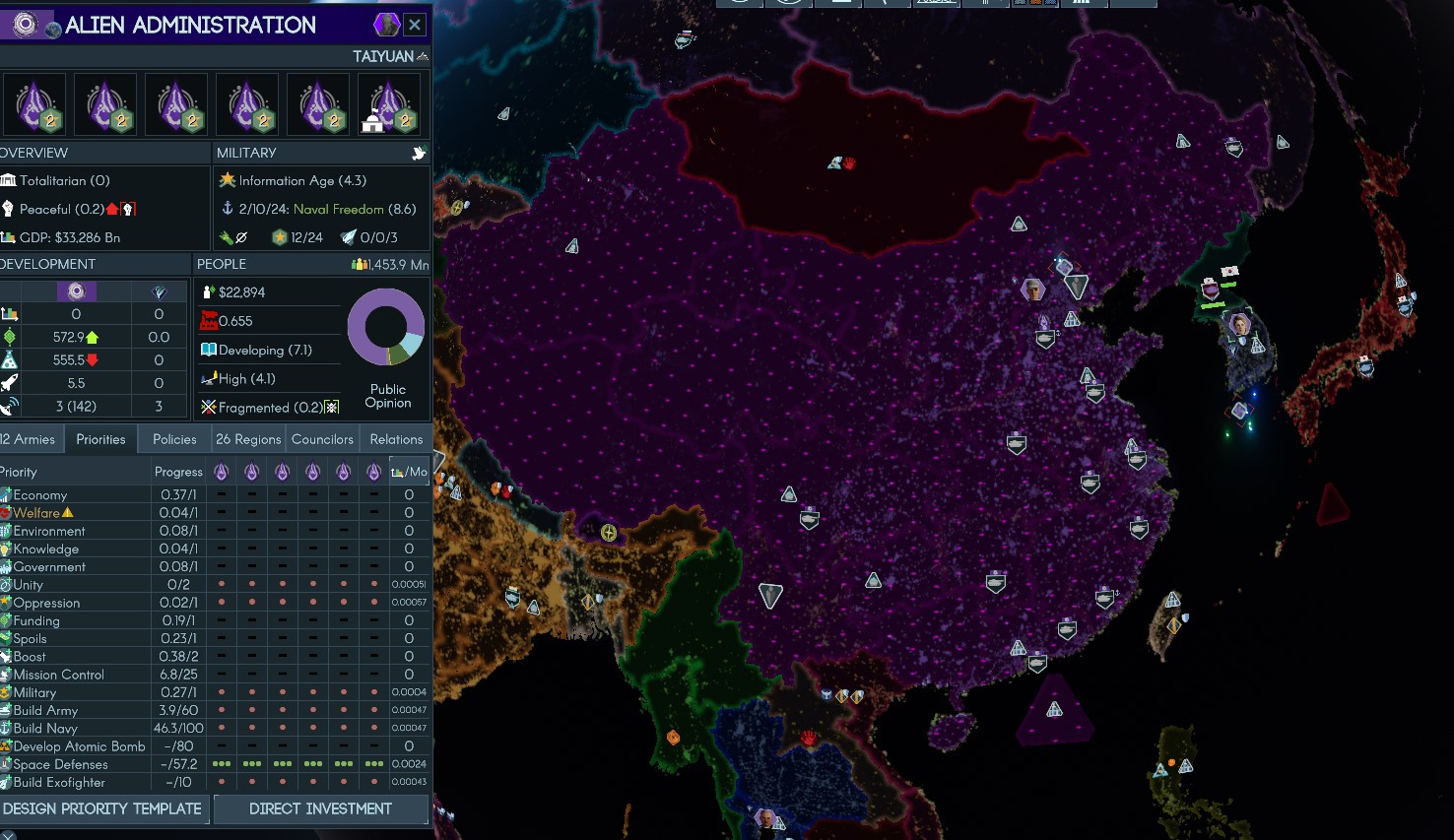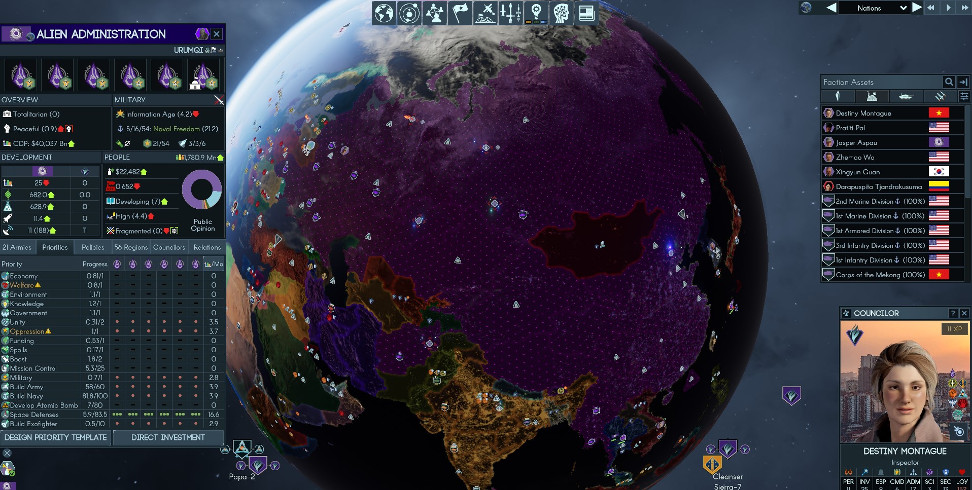 Endgame Servants is a fucking slog. In 2031, the AA started in China. By 2032, they had most of Asia sans India and were breaching into the middle east and Europe. It's now the middle of 2034 and they've been sitting around with their thumbs up their asses giving me fucking Belarus over and over while I spend entire goddamn years running abductions because I need 15 to hand over a country but can only do 2 per turn. I have dominance over the orbits of Earth, Luna, and Mars, global research has stagnated, and pretty much every human military outside of India has been smashed to pieces. I really do feel like a servant, given how hard I'm fucking carrying them.I should've won 7 hours ago. It'll be another 7 before I even see the light at the end of the tunnel. I've played porn games with more engaging filler content.
