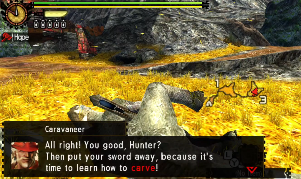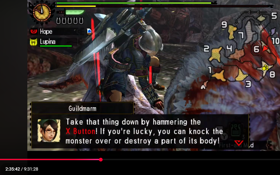 >check out MHFU because of all the posts about how soulful OG monhun is>fighting a bulldrome, some monkeys are also attacking me>I know, the bulldrome just does a big telegraphed charge over and over, I'll line it up so he runs over the monkeys and I don't have to slowly chip them down with my shitty starting weapon while dodging the big guy>He just kind of gingerly pushes the monkeys out of the way doing no damage as they continue to ignore eachother to kill menice game boomersI am enjoying it though even if it's just circle strafe and hit triangle once every 20s simulator fighting these 1 star pieces of shit