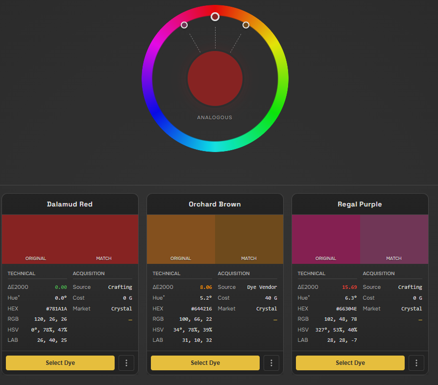 >>554806350You got like 3 shades of blue. Chest is bright, arms are purpleish and feet are like turquoise. Your gloves are like purple-ish brown. Legs have some weird red going on. Do yourself a favour and learn some colour theory. https://xivdyetools.app/harmony