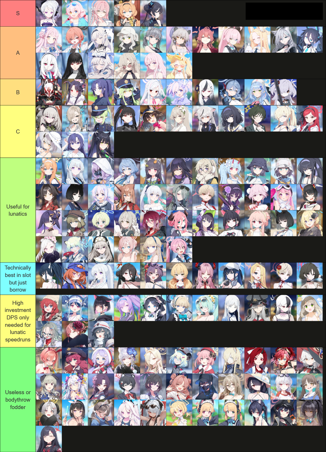 >>554807360How strong is bArisuEven if she isn't dHina-tier she still has potential to be in S tier because blue is so bad overallAlso sMika should be in S she's completely broken
