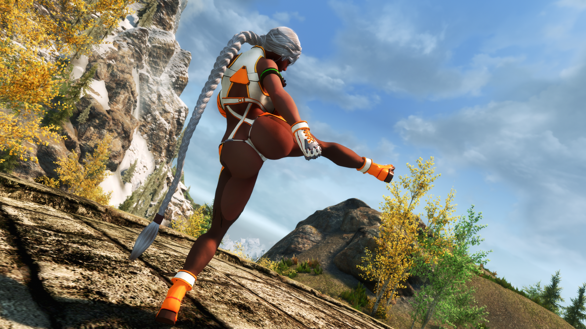 >>554826997It's the DFO Fighter outfit. You can get it here. It also comes with it's own idle animation while you're wearing the bodysuit. https://www.nexusmods.com/skyrimspecialedition/mods/107621I combo'd it with the GS unarmed MCO for a neat hand to hand thing, which you can get herehttps://www.nexusmods.com/skyrimspecialedition/mods/169488>>554826882Too bad she's a Conjuration mage so all she can do is just cosplay. She's terrible in melee -_-