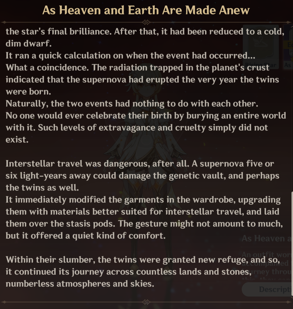 100% EditionPrevious: >>554799592 >Character Trailer - "Columbina: To Where She Flies"https://youtu.be/WsYsNoNjbaw (EN)https://youtu.be/9AVYsSZ1huA (JP) >Character Teaser - "Columbina: Where She Dwells"https://youtu.be/ME4OGvcPBUs (EN)https://youtu.be/7zLvIrPBGF4 (JP) >Version "Luna IV" "A Traveler on a Winter's Night" Trailerhttps://youtu.be/_yuHIzPJGHA (EN)https://youtu.be/wTL5hRtmWjM (JP) >Outfit Teaser: Teyvat Style – Nocturne of Serenityhttps://youtu.be/Q5I3xKJfIO4 (EN)https://youtu.be/TGsTYPeOtxw (JP) >Current character banner: Columbina, Ineffa, Ifa, Sethos, Fischl>Current weapon banner: Nocturne's Curtain Call (Catalyst), Fractured Halo (Polearm)https://www.hoyolab.com/article/43195155 >Daily check-in rewards (permanent)https://webstatic-sea.mihoyo.com/ys/event/signin-sea/index.html?act_id=e202102251931481&lang=en-us >Redeemable Codes with Primogems (all regions): https://genshin.mihoyo.com/en/giftGENSHINGIFT8X73KH58KDHNMoonInvitationLunaIV (NEW)P3GXX56W3VG9 >Useful Links (Wiki, Simulators, Maps, Character Builds, /gig/ friendlist, Third-Party Tools, etc.)https://rentry.org/giglinks /gig/ OP pastebin (use this if making new thread):https://pastebin.com/ca0zseQ9