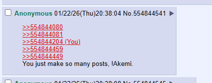 >>554845613>>554845674>>554845757>>554845782Hi, !Akemi. Your "meme" will never be a thing.You will never "trigger" anyone by spamming random typos.