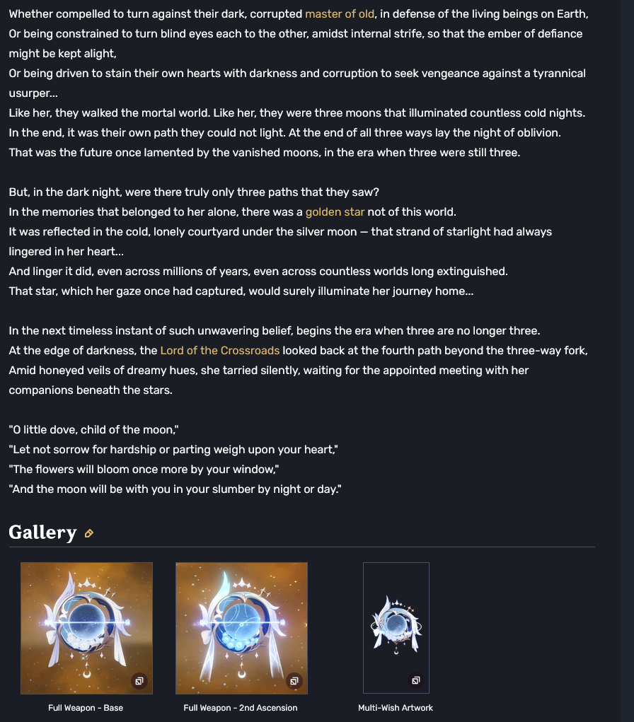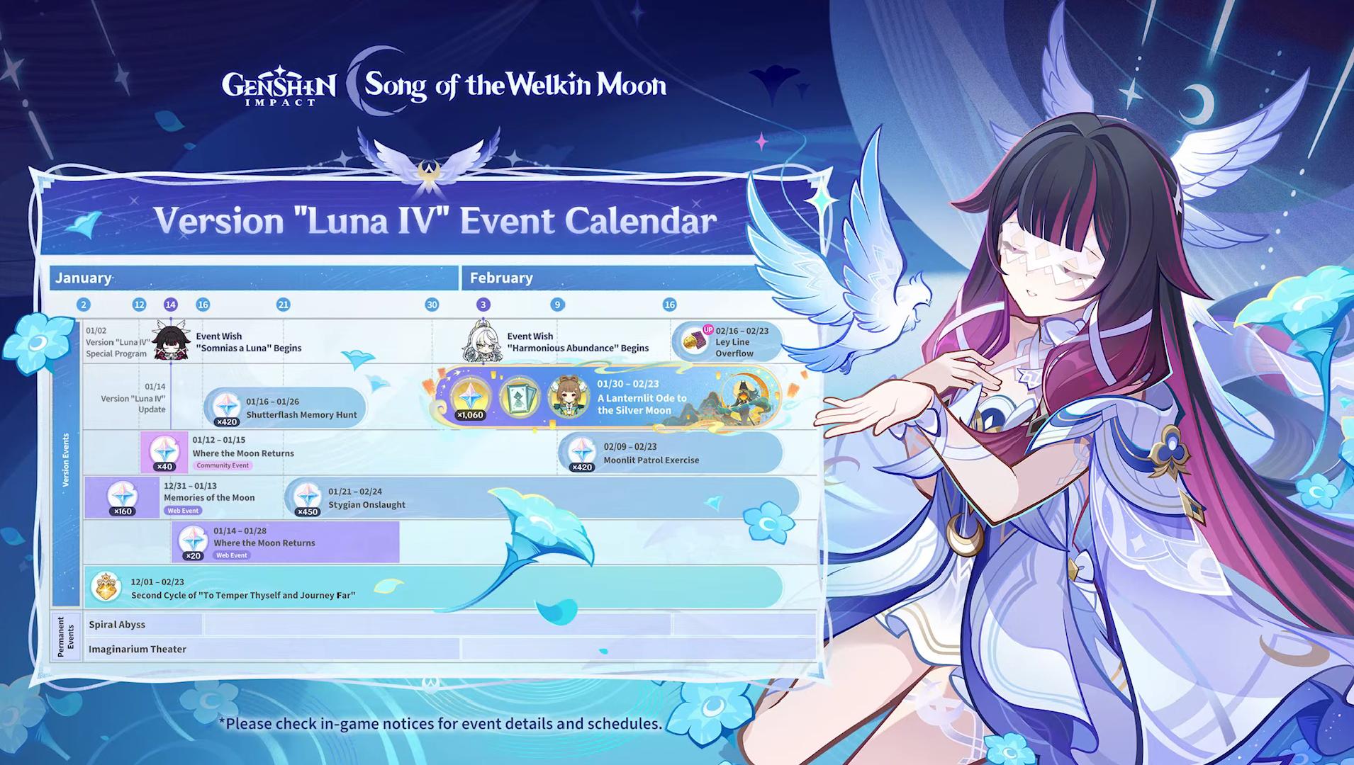 Previous: >>554775563 >Character Trailer - "Columbina: To Where She Flies"https://youtu.be/WsYsNoNjbaw (EN)https://youtu.be/9AVYsSZ1huA (JP) >Character Teaser - "Columbina: Where She Dwells"https://youtu.be/ME4OGvcPBUs (EN)https://youtu.be/7zLvIrPBGF4 (JP) >Version "Luna IV" "A Traveler on a Winter's Night" Trailerhttps://youtu.be/_yuHIzPJGHA (EN)https://youtu.be/wTL5hRtmWjM (JP) >Outfit Teaser: Teyvat Style – Nocturne of Serenityhttps://youtu.be/Q5I3xKJfIO4 (EN)https://youtu.be/TGsTYPeOtxw (JP) >Current character banner: Columbina, Ineffa, Ifa, Sethos, Fischl>Current weapon banner: Nocturne's Curtain Call (Catalyst), Fractured Halo (Polearm)https://www.hoyolab.com/article/43195155 >Daily check-in rewards (permanent)https://webstatic-sea.mihoyo.com/ys/event/signin-sea/index.html?act_id=e202102251931481&lang=en-us >Redeemable Codes with Primogems (all regions): https://genshin.mihoyo.com/en/giftGENSHINGIFT8X73KH58KDHNMoonInvitationLunaIV (NEW)P3GXX56W3VG9 >Useful Links (Wiki, Simulators, Maps, Character Builds, /gig/ friendlist, Third-Party Tools, etc.)https://rentry.org/giglinks /gig/ OP pastebin (use this if making new thread):https://pastebin.com/ca0zseQ9