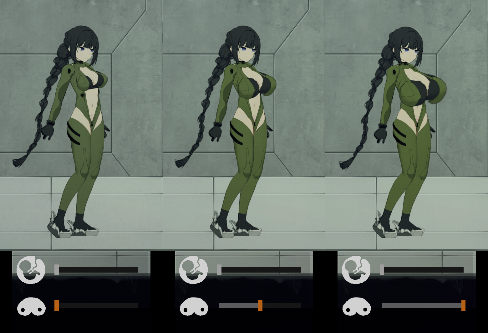 Sliders make games staleyou just set shit to what you want, fry your brain with that hit, then rarely change it to anything elsebreast sizes should be unlockables much like clothing, or affected by status effects / equipment.