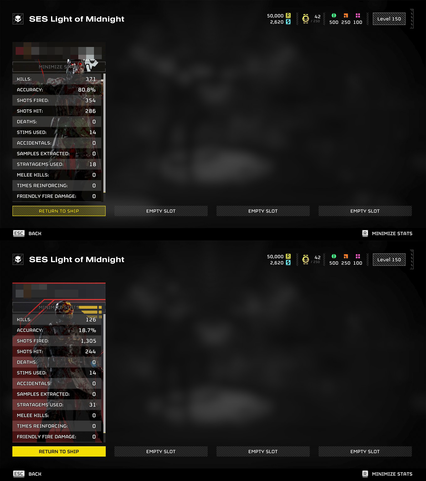 >>554854817Very good. Hmm yes, I like that.I'm only going to post this one once.Samples, Medals, EXP, and Reqmaxxing with fucksweden.bat>Follow the first nine steps in >>554789382>Click on the [-] button next to "Features">Scroll down and check "Add Samples Instantly">The samples should be set at 34 Common, 33 Rare, 33 Super>You can adjust the numbers by setting the "Value" to a different number but keep in mind that the total amount of samples are capped at 100 so set it like 50 Common, 45 Rare, and 5 Super or something>Setting them to a total of over 100 samples will revert them to 34 Common, 33 Rare, and 33 SuperYou are now samplemaxxed.>Scroll down and check "Force Apply Difficulty Multiplier On Reward">Check "Max Mission Reward">Under "Max Mission Reward", check "Medals Multiplier" and set the "Value" from (Default) to 1000>You can also check "EXP & Requisitions Multiplier" and set the "Value" from (Default) to 100000 to skip Requisitions and EXP grindYou will get 1000 medals for every mission completion but your medals will still be capped at 250 nonetheless.EXP has a cap of around 8-10k while requisitions have a cap of around 25-30k per mission.Now on to the grind skipping grind.>In fucksweden.bat, Scroll down and check "Instant Complete Mission (Main+Side)">Check "Set Extract Time">Go 2 socials and set matchmaking to invite only>Pick any desert planet with a maximum of Diff 5, any mission except Blitz/Erad>Pick the drop spot at the extraction site>Once you drop down, press "I" to instantly complete all missions>Call in extraction>You can do all of this while SC cheatfarming too, see >>554789382>Get into the pelican>Immediately press ESC>The moment you see your Requisitions go up and Medals hit 250, click "Return to ship" to skip the EXP gained and mission report screen>Repeat from step 4 in this section
