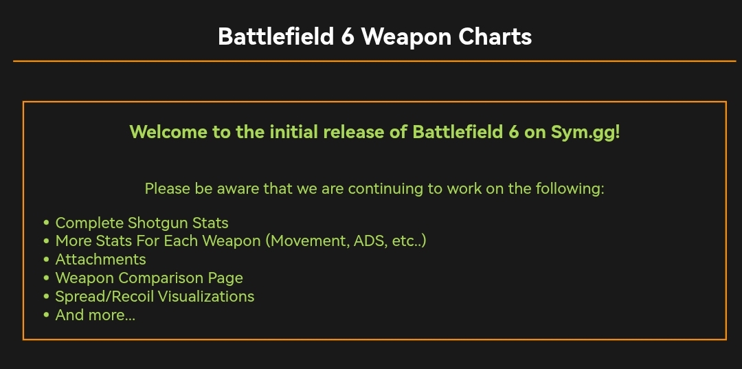 >>554923880Took them for a while, the charts are up but the rest of the info are WIP.https://sym.gg/legacy/index.html?game=bf6&page=charts