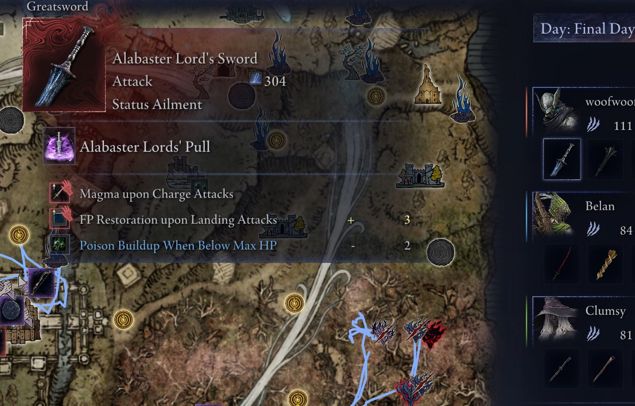 >>555013140our wylder had Marias Executioner Sword (of which i gave), Devourer's Septer, and Grafted Greatsword.Truely a Gluttonous Entity
