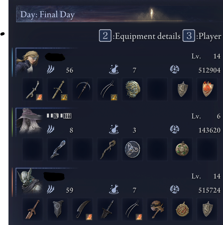 lol nice night 1 wipe, at least I got a kino relic with bestial+ and incants+2 from that