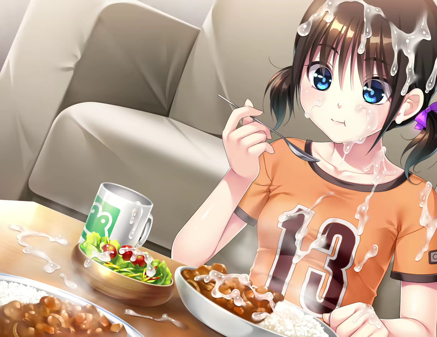 She has a lot of funny faces to go with those meaty nips. This is the soul of eroge.