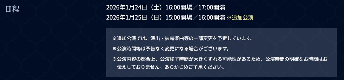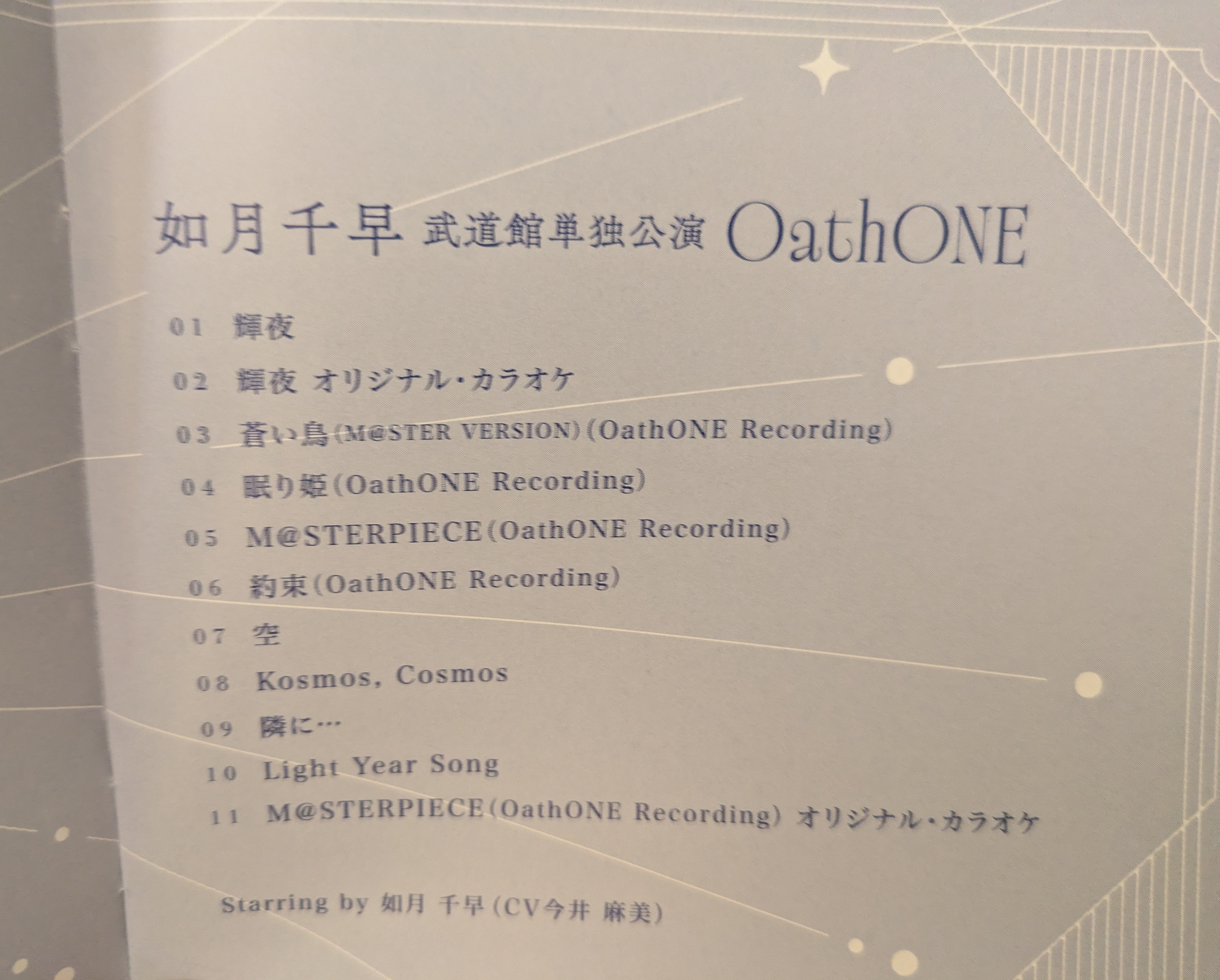 https://x.com/imas_official/status/2015014825445949670OathONE Day 1 SetlistKassy might be dead but the post-live stream is in 15 minutes:https://youtube.com/live/EQ4-8FSdH0A