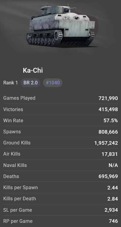>>554974206Well yeah any of the nig 3 vehicles having a 60%+ winrate is a massive redflag