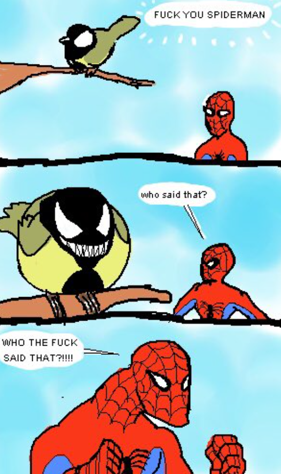 >IIIIIIT'S SPIDE- *dies, wails like baby, shits diapey*lol little geekhttps://voca.ro/1hPleKGLSb4G