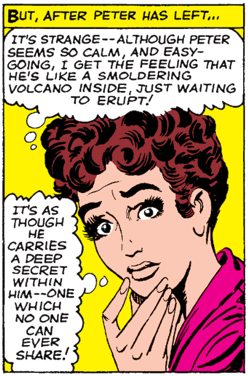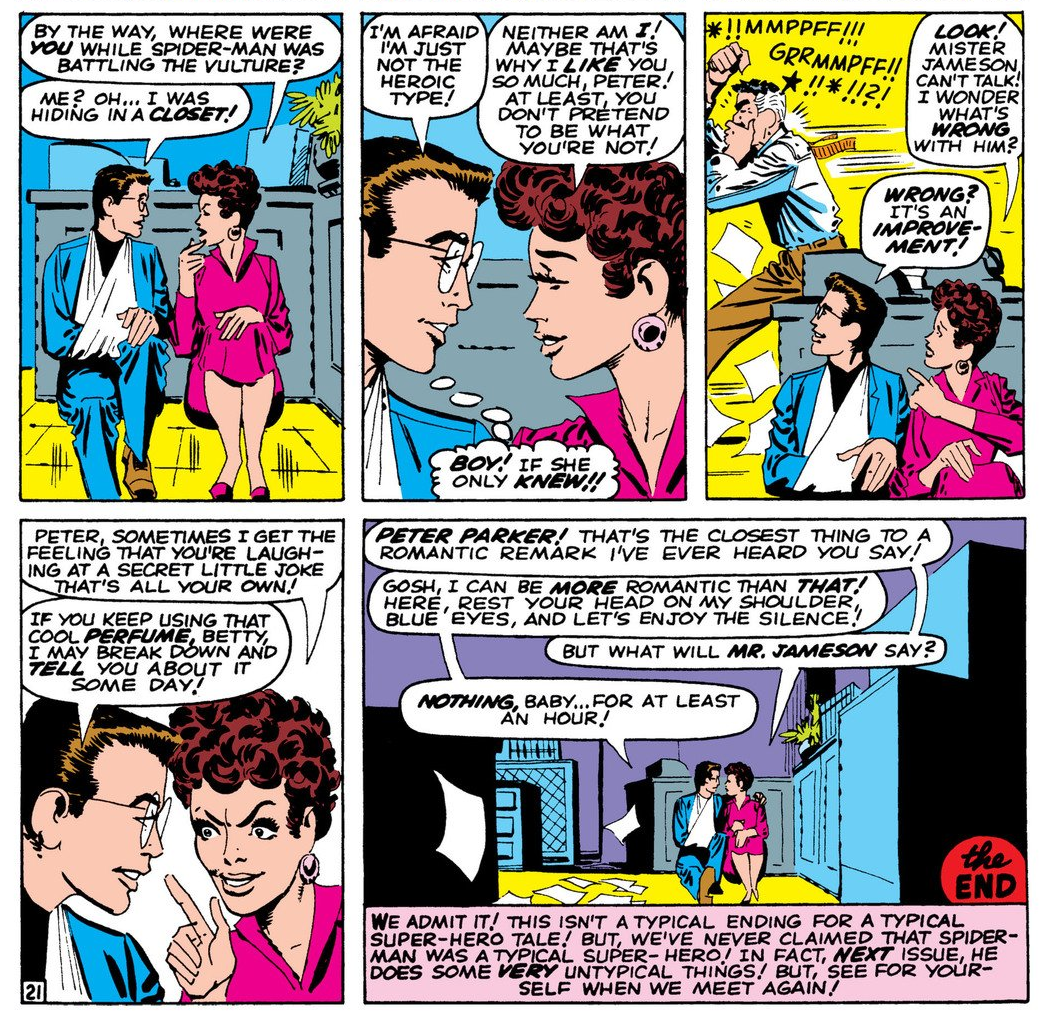 >>555031104Funny enough I have been reading the original run lately, I always kind of felt Peter still had his 'insecure charm' then, because it is very clear he can't even tell how Betty feels about him for the most part because of his own lack of self confidence.