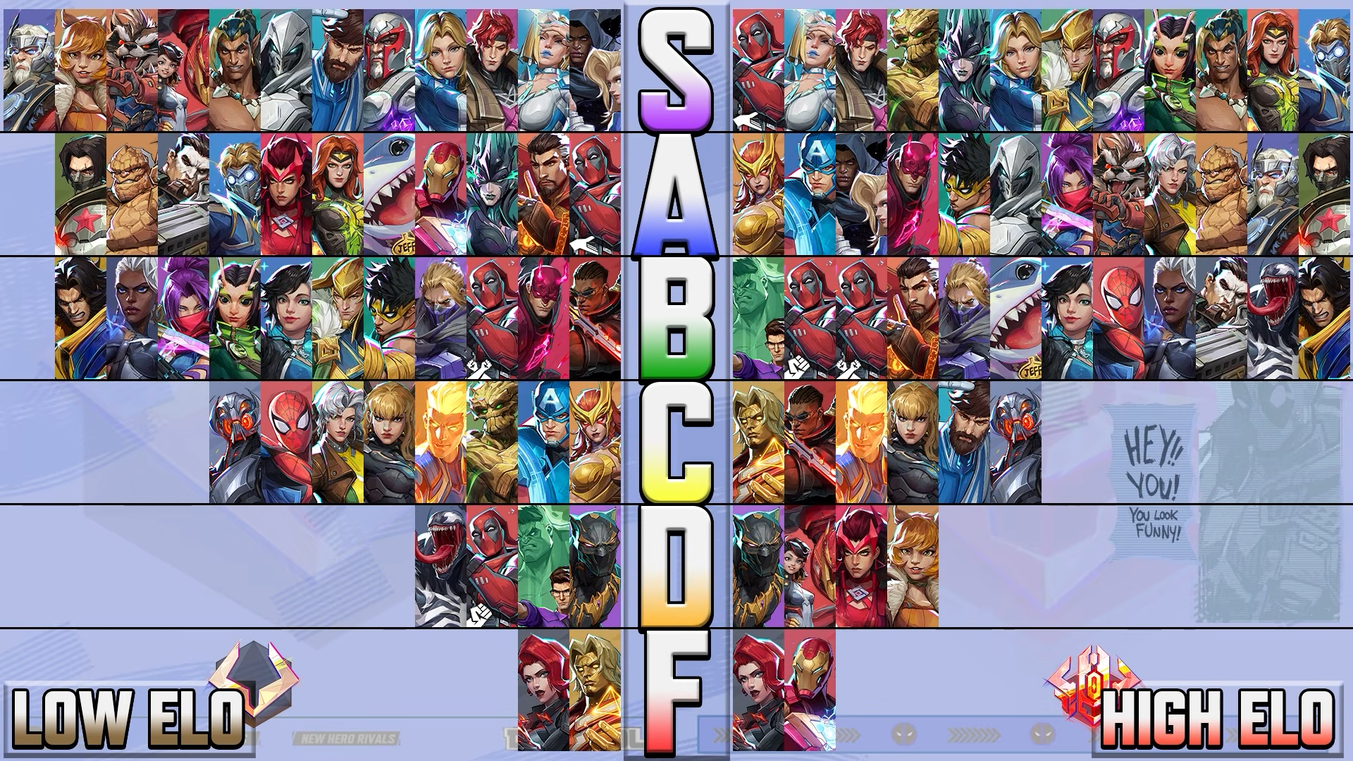 >>555047692that low elo list is kinda accurate, finally some respect on SW, SG, MK - the QP godsalthough BP is too low thereHela is probably too high, she requires too much aimWidow and Adam being the worst is correct