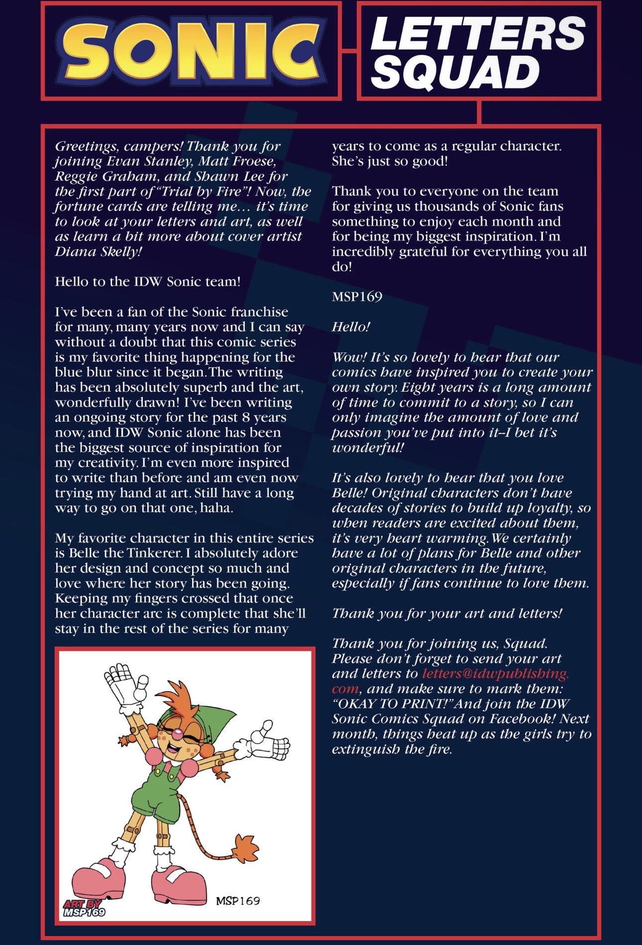 >>554996521She's still a fine character and serves a purpose even if it's to be the friend of another IDW oc. She got her little museum, can easily be utilized in a game as someone you go to buy stuff from.What the fuck does Belle have? Her arc gets drawn out over and over because she's a character that was created before they knew Sage and what Sonic Team had plans for, she can't go back because Tinker will never be a thing again, she's not going to be evil, etc. Not all characters don't have to be action focused even if this is an action heavy franchise, but if you're going to have a character that isn't, they need to serve some other purpose. Belle doesn't have that. Once they stop focusing on her issues with Eggman, she does fucking nothing. Jewel at least has her retard moment in the last arc as a "leader", but Belle was there and did fucking nothing, was almost a liability with her damn motobug having the the monkey guy fix it last minute. Only existed to get captured and tied in a closet. This character does nothing.Taking her to scrapnik island and helping the other bots could have been a better idea than just retreading her daddy issues for the millionth time and trying to force us to like her with weak shot of her acting defiant. She can never be Eggman's daughter or aligned in a team with him or any of the weird found family shit xitter likes to shoehorn her into with Sage, Metal Sonic, Orbot and Cubot. Belle is a disappointing character in so many ways, Evan is retarded to boil it down to "you don't like her cause she's not le action character"