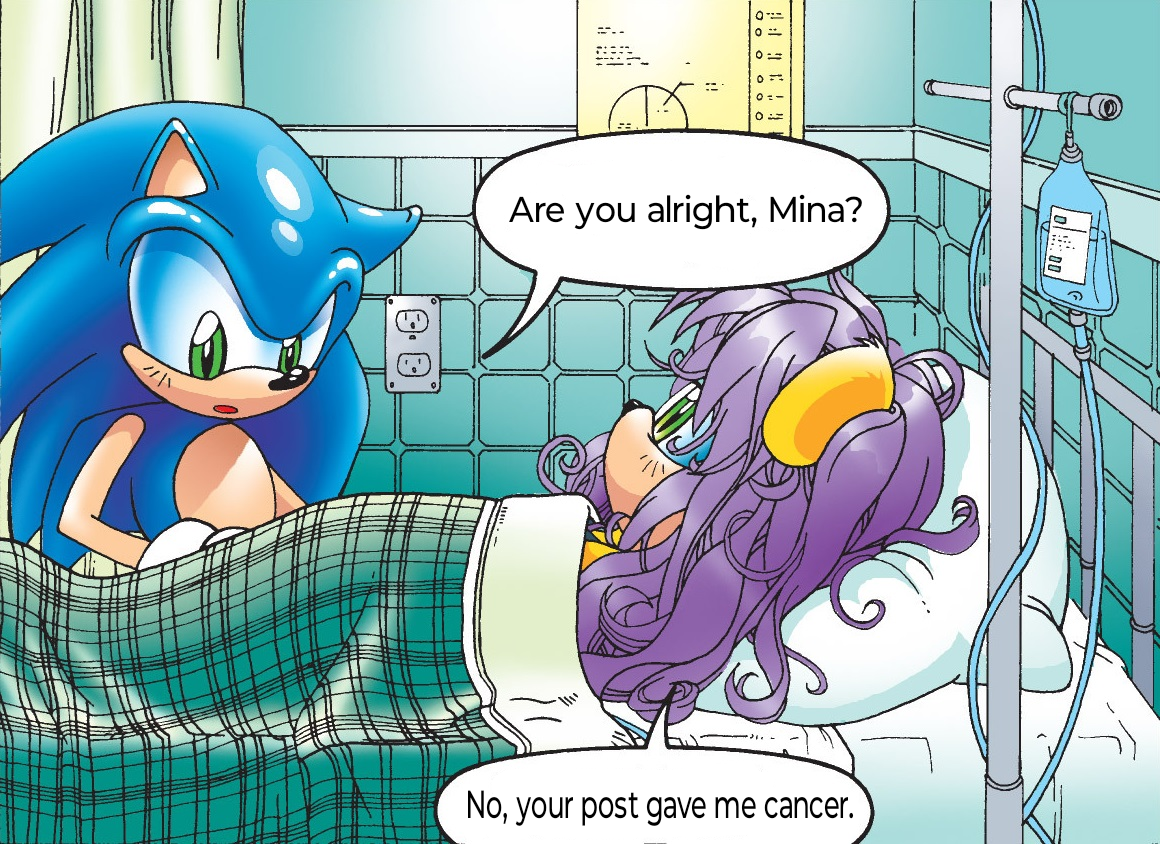 >>555039995>IDW approaching issue 100 and the team is struggling with creative and production issues>recent arcs feel like filler, nothing significant happens>issue 81-83 focused on some kid named Sole who has an alter ego thief persona from parental stress>Sonic attacks the kid's parents for breaking their phone as punishment which was weird as hell>turns out the family isn't even abusive, just had communication issues>Eggman shoehorned in at the end so there's actually a villain>$5 an issue for this filler garbage>continuity is a mess, Frontiers placement makes no sense with the emeralds>Evan Stanley said Frontiers takes place before issue 68 but they were told to keep things "continuity light">Shadow oneshot got cancelled while waiting for Sega approval>someone now has all the Chaos Emeralds, probably Starline returning>Sage getting introduced in issue 84 which could be cool for Belle and Metal interactions>35th anniversary coming up so hopefully they step it uphonestly sounds like the usual IDW cope. "it's just a minor hiccup bro the next arc will be good I swear." we've been hearing this since Metal Virus ended. the comic has been stuck in post-Forces limbo for years and Sega's mandates keep neutering any interesting story potential. at least Archie could do big shake-ups even if it was messy. IDW is just perpetually playing it safe with filler arcs about OC kids with family drama nobody asked for.