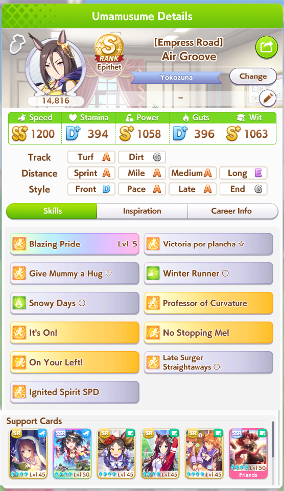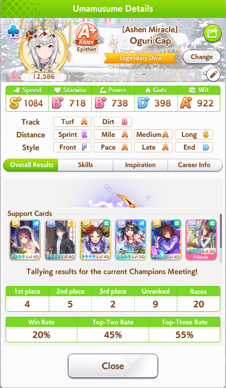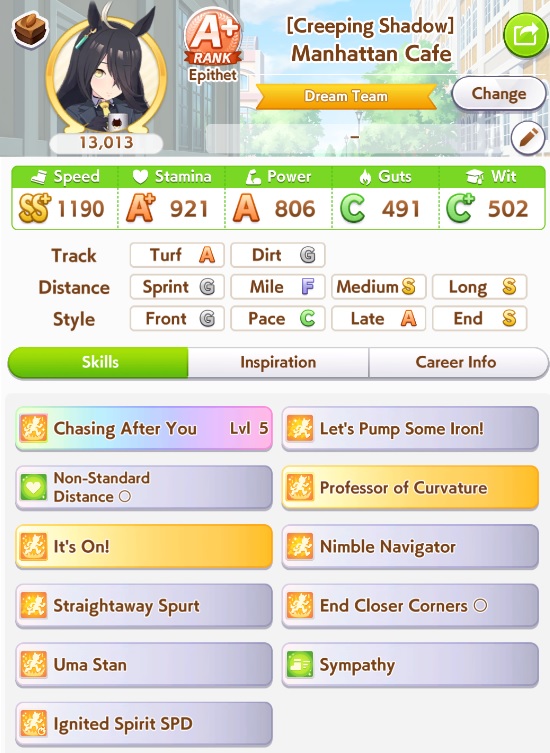 Current Rate Up Support Cards: Manhattan Cafe (SSR), Inari One (SR), Nice Nature (SSR), Oguri Cap (as in peak SSR)