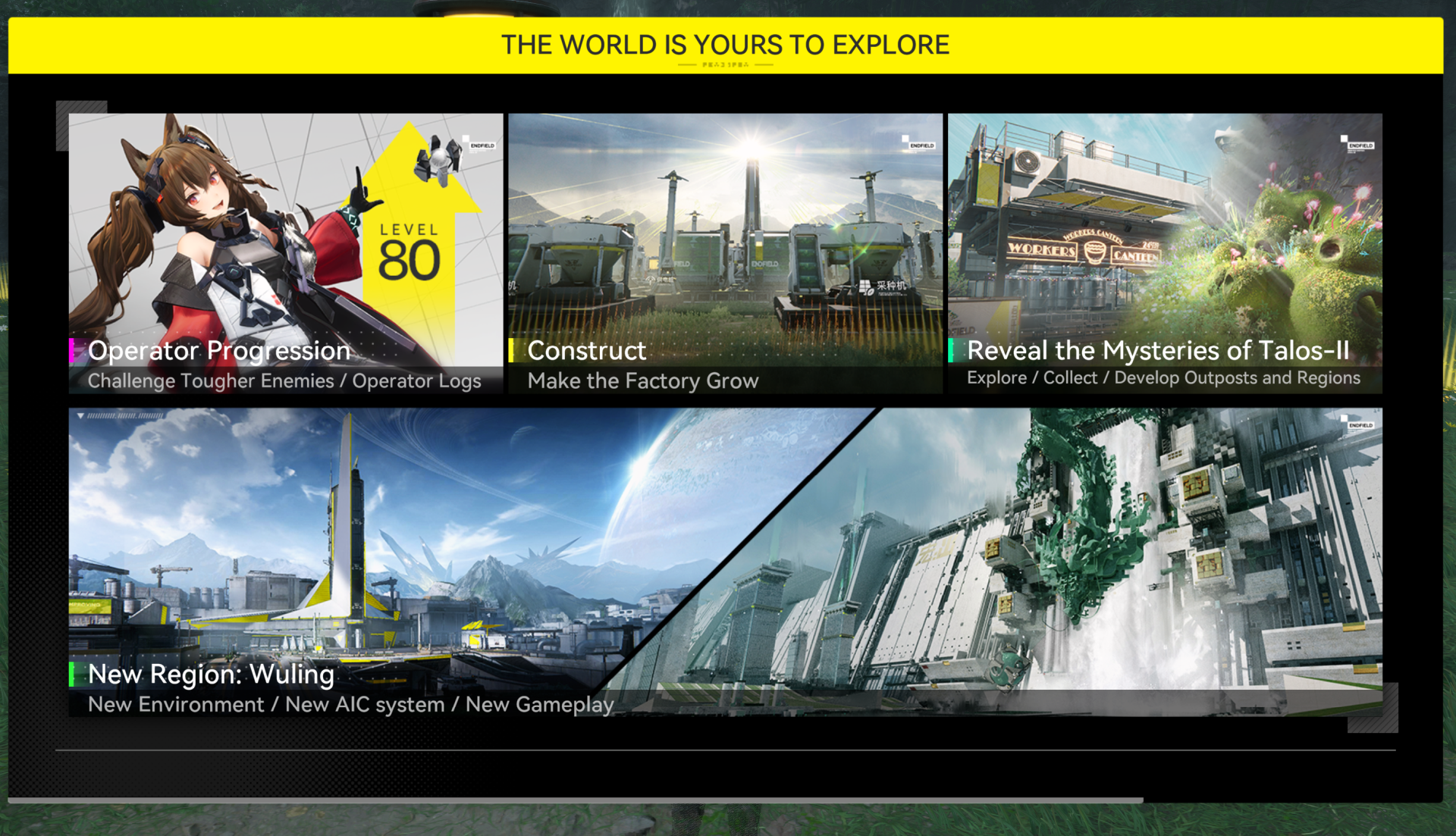Previous thread: >>555017925>Official Websitehttps://endfield.gryphline.com/en-us>Official EN X (NEWS HERE)https://x.com/AKEndfield>Chartered Headhunting ScheduleJanuary 21st to February 7th --- "Scars of the Forge", (Laevatain)February 7th to February 24th --- "The Floaty Messenger", (Gilberta)February 24th to March 13th --- "Hues of Passion", (Yvonne)>Launch Reward Codes (Valid until January 29th)RETURNOFALLALLFIELDENDFIELDGIFTENDFIELD4PC>Voyage to the Stars (Ongoing until March 4th)https://endfield.gryphline.com/activity/voyage-to-the-stars/en-us/>Special Launch Streamhttps://www.youtube.com/watch?v=dz2g_D52NR0>Official Release Trailerhttps://www.youtube.com/watch?v=oJ00ggFb8A0>Official Release PV'shttps://www.youtube.com/watch?v=5Xm45NwWOlohttps://www.youtube.com/watch?v=UPpeeft1-8ohttps://www.youtube.com/watch?v=tN80M6IEMo0>Wikishttps://wiki.skport.com/endfield (Official)https://perlica.moehttps://warfarin.wiki/enhttps://endfield.wiki.gg/>Blueprint Guideshttps://talospioneers.com/en>Stickershttps://drive.google.com/drive/folders/13KH3L6QPIKkVH7pBddv4uxwmwJsnOtklhttps://drive.google.com/drive/folders/1OuVtjv1k-9c3M6n7d4PX3CGG5bkwH04ahttps://drive.google.com/drive/folders/1AStB8bzFk3lSwMwczWPkFYCBrZe0vHOghttps://drive.google.com/drive/folders/1yS0lqUhxf8tBRtpDFfCU1y16IS2sSeF7