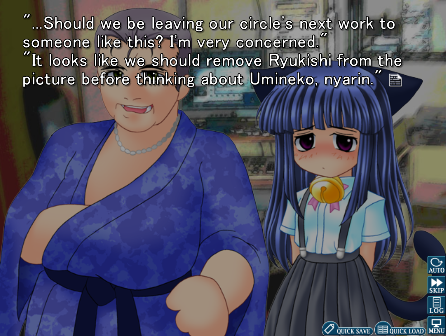 Visual Novel General #7403//This general is for the discussion of English-translated Japanese visual novels.All posting of untranslated visual novels belongs on >>>/jp/E-celeb shitposting is not allowed.Kindly use spoiler tags appropriately when discussing plot spoilers to facilitate smooth discussion.>Having trouble with your VN? Try the following before you ask for tech support:1. Be in Japanese locale2. Read the Readme3. Check https://rentry.org/4chan-vn-help4. Copy error messages with CTRL+C and paste them with CTRL+V into DeepL5. Google it>FAQs, Recommendations, and Other Useful Things:https://chartanon.github.io/moechart/https://files.catbox.moe/j3dd0n.png (embed)https://github.com/marisukukise/japReader>Need a novel with a specific element?https://vndb.org/g>Download Links:https://rentry.org/4chan-vn-linksPrevious thread: >>554983792