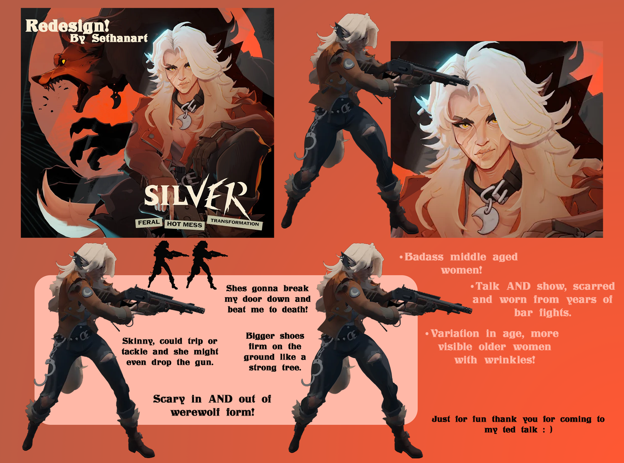you could slightly remake her lore into being a middle aged woman who NOW regrets being a rebellious whore who escaped into the woods and then promptly wasted half of her life eating berries and shitting in bushes