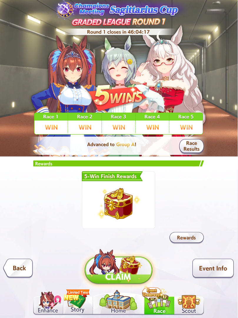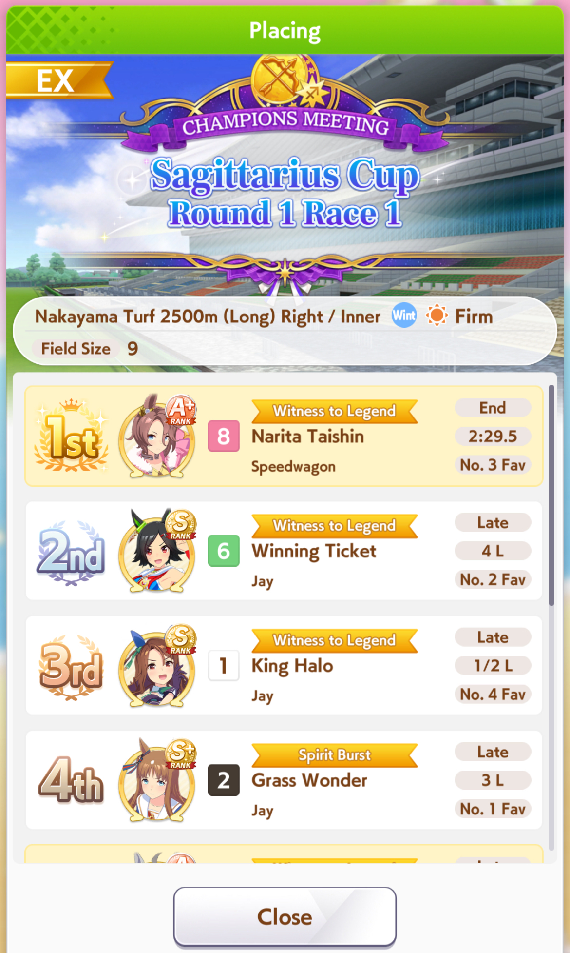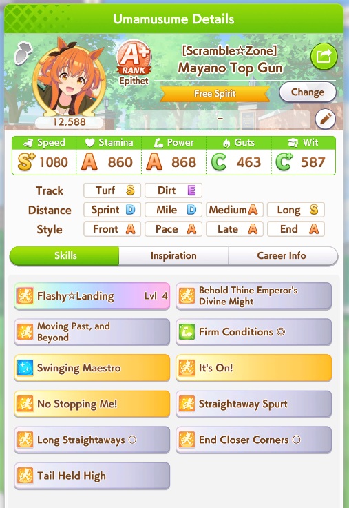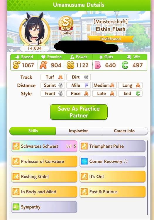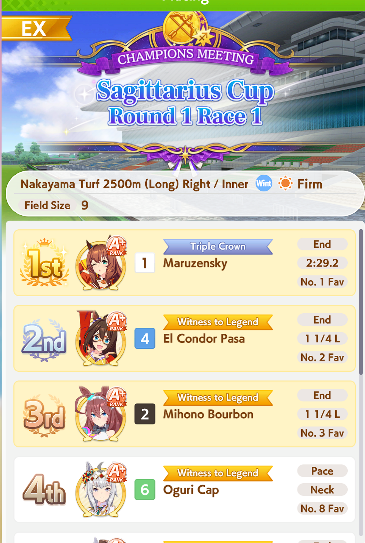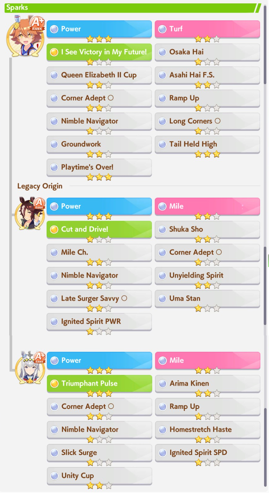 POST EMTaishin and Golshi are carrying as usual, with Golshi picking up a few more cleanup wins when Taishin fumbles. Trying out this Tama, testing the Oguris again, and dropped the Seiuns. Pace promoted Oguri is hard to beat, but I think I'll keep cranking out Tama careers in case I high roll her.