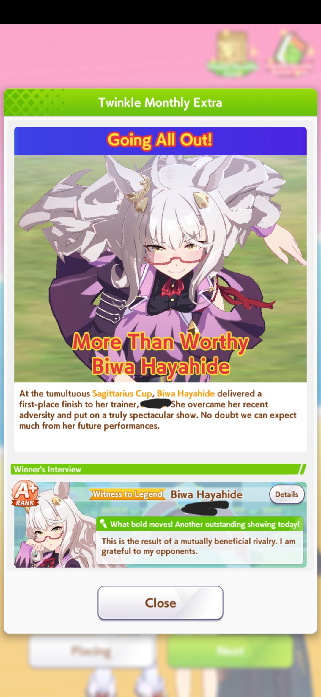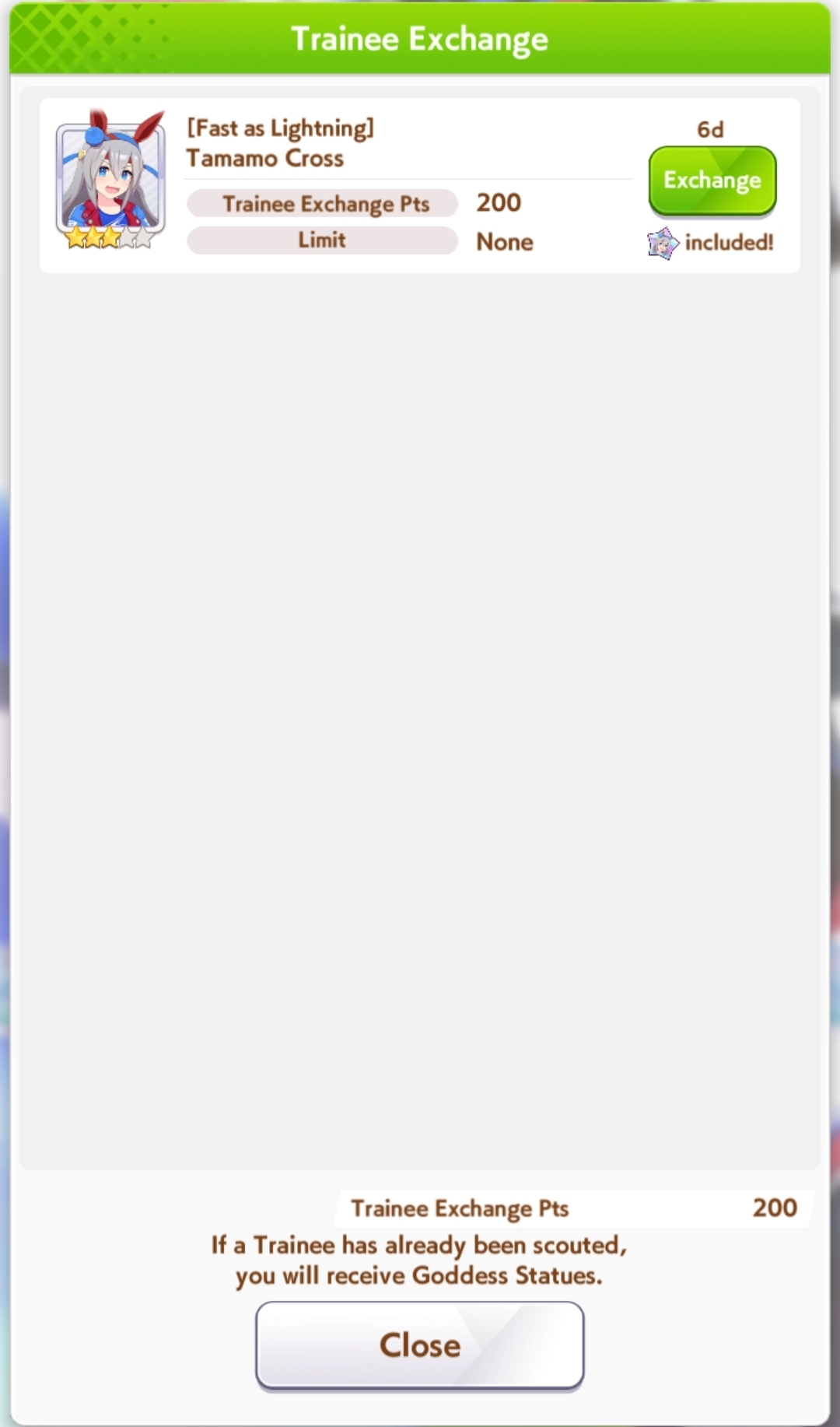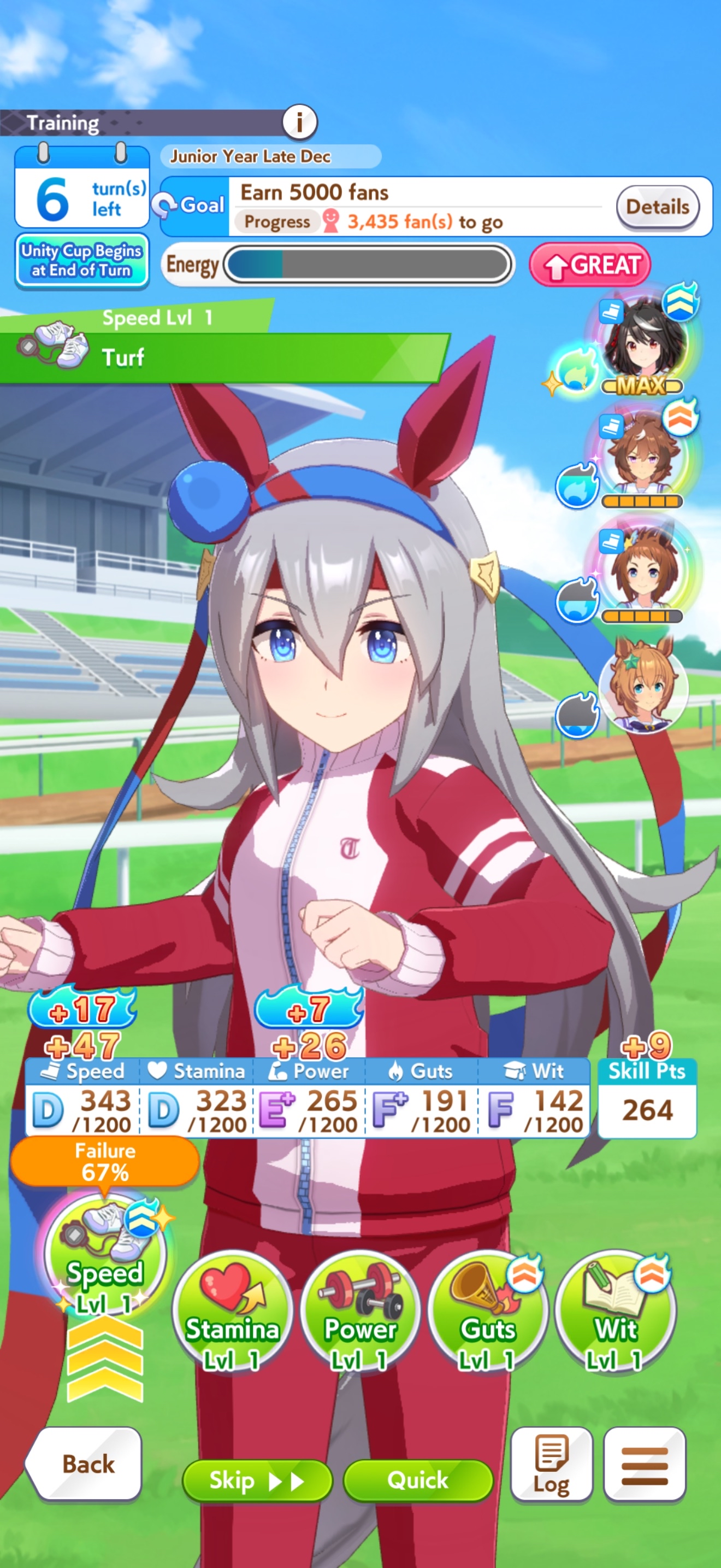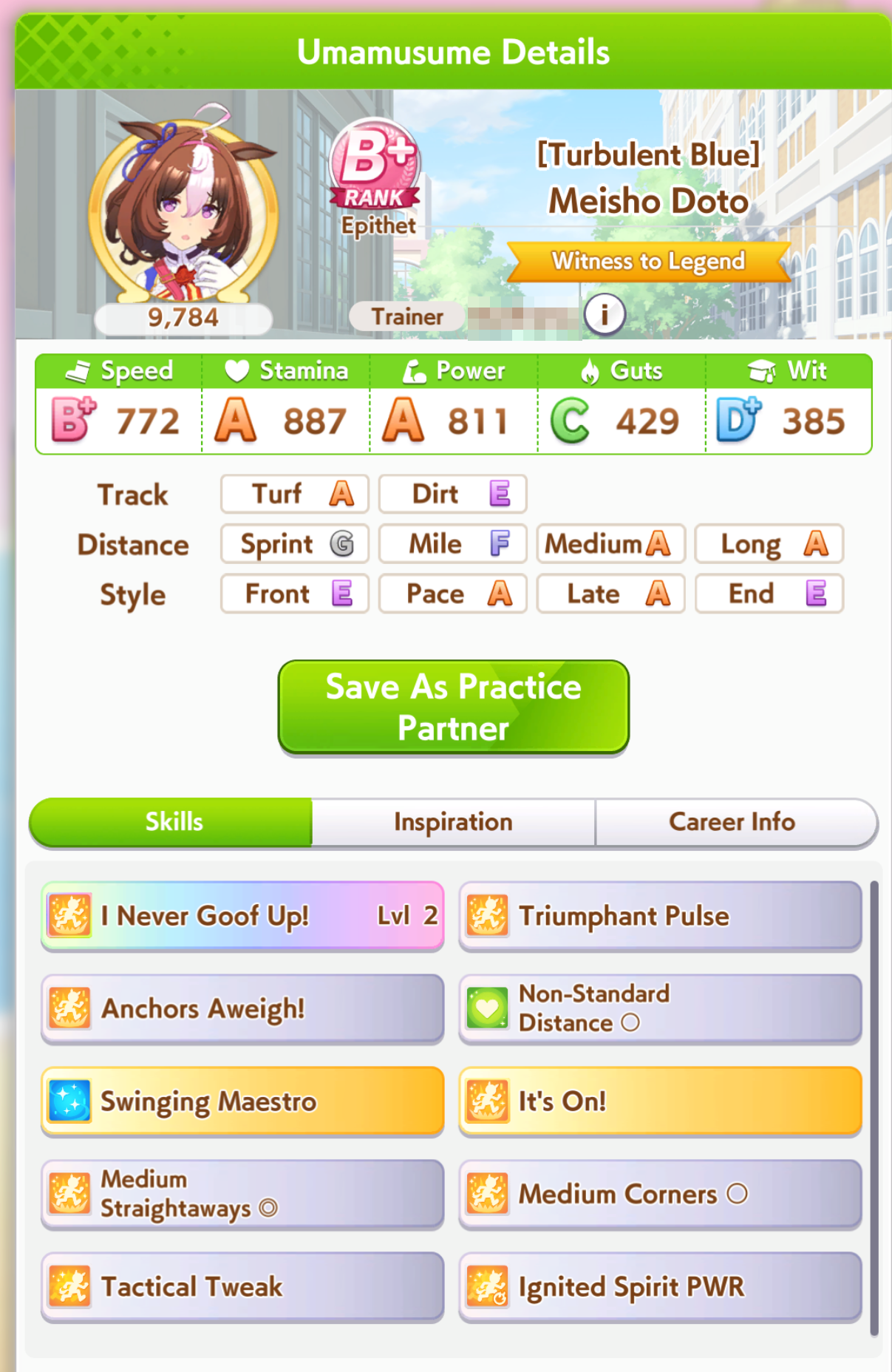 POST EMTaishin and Golshi are carrying as usual, with Golshi picking up a few more cleanup wins when Taishin fumbles. Trying out this Tama, testing the Oguris again, and dropped the Seiuns. Pace promoted Oguri is hard to beat, but I think I'll keep cranking out Tama careers in case I high roll her.