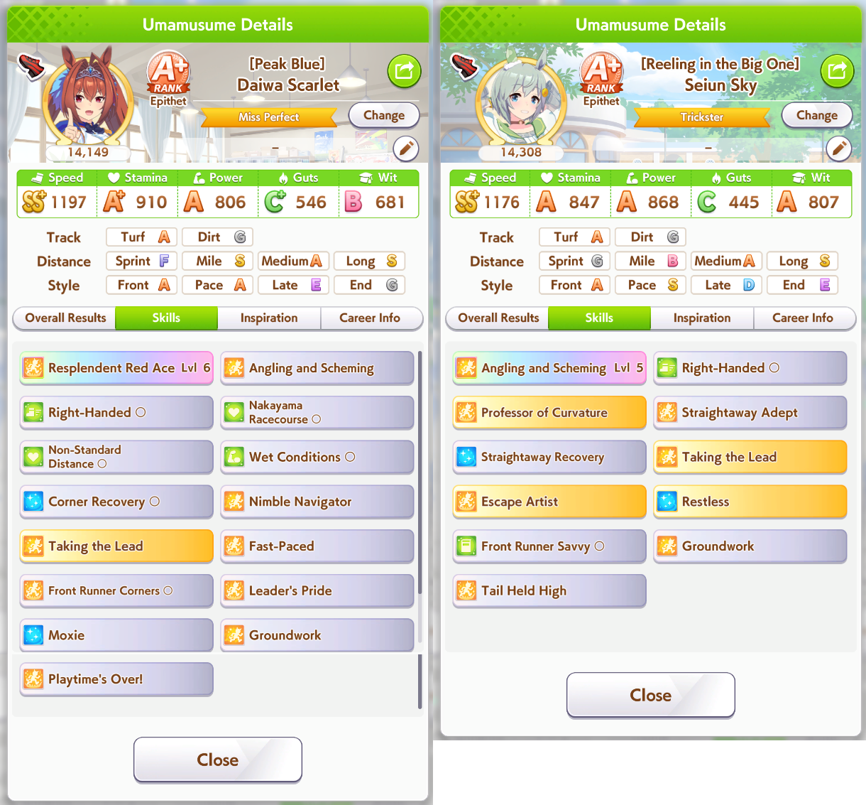 >>555066551My Sky has much more wit and much stronger mid-race skills than my Scarlet. Scarlet has to fight really hard for the lead.