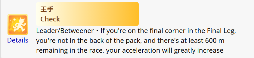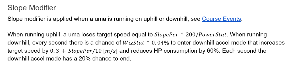 >>555066779Wit also determines the chances the Uma tries to overtake and the downward velocity. As this track has a long downward you can get screwed.Still I had some 390 Goldships still win due to power and the spurt NSM combo