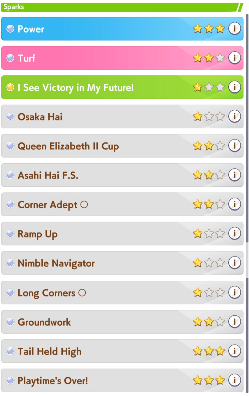 >>555088248There is also the forbidden method.>proc Lv5 Ignited SPD off inspiration>buy it>little cockballs gave me +3 pwr hintI've only actually managed to have the spd spark hit twice. Both times it maxed out to 5. Both times she gave me pwr instead.