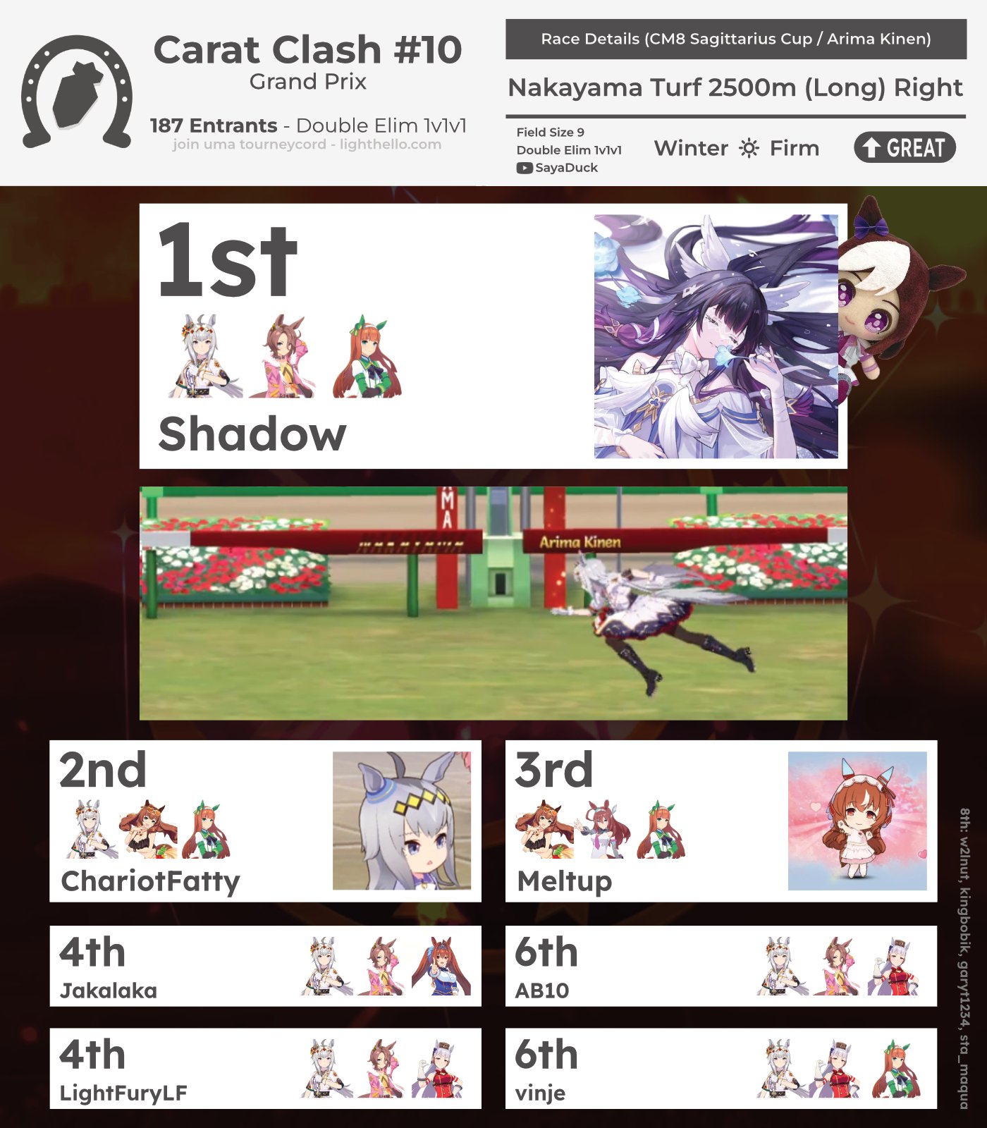 >>555087847>the best meta read for last CMthat would be vfaggot though, suzuka maru and taiki dominated