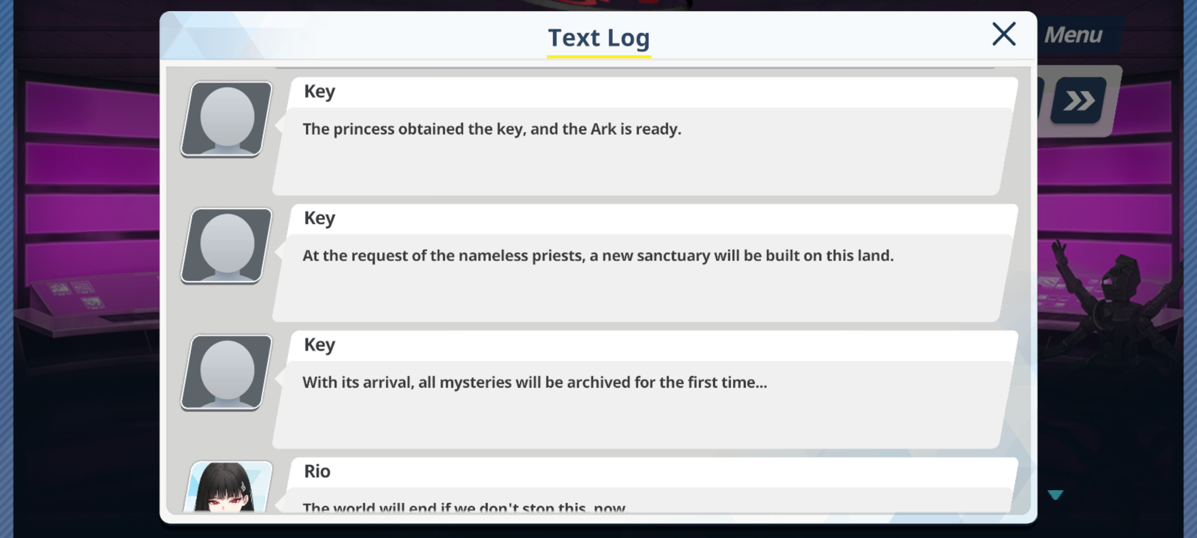 >>555097320According to Kei the purpose of the ark of atrahasis was to create sanctums that would archive the mysteries (which I read as removing them/the students).I think Francis also mentioned it, that the chroma would take in all the mysteries of the world... I can't remember if he used the word archive then though.It's a funny thought, while it's most certainly not true the fact that the first thing taken by the false sanctums was the blue sky, I wonder if the goal of the nameless priests is the creation of the blue archive.