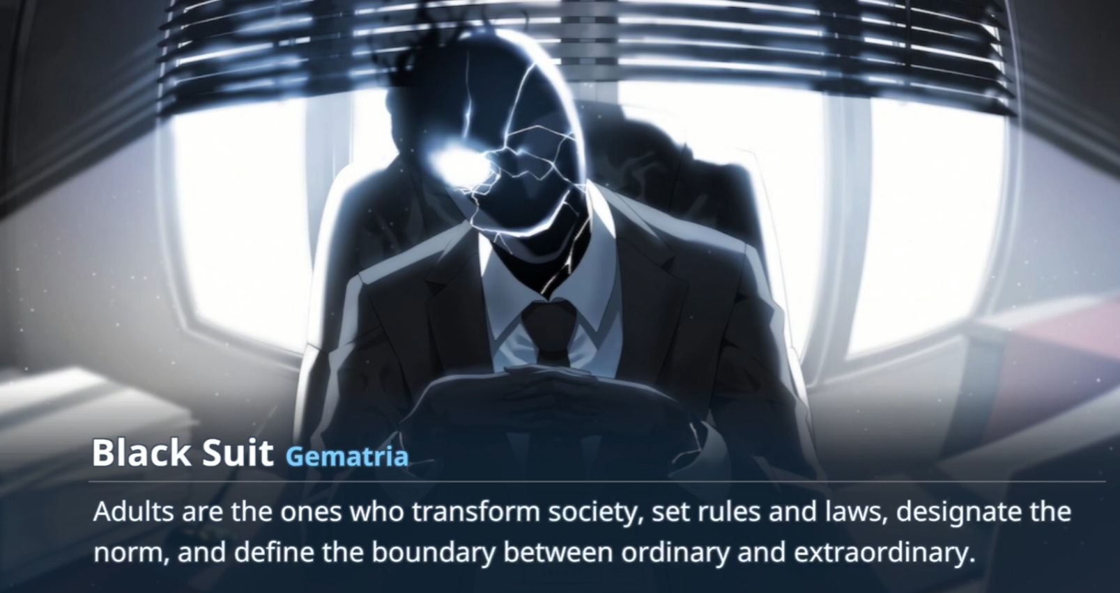>>555097779Bro if you literally cannot point out what you are making up, then you're making it up.The first meeting with Black Suit does not say "you see the world in a way that we do not", it has Black Suit say that he doesn't understand why Sensei does not view adulthood the same as himself, nor does he understand why Sensei gives a shit.He issues no warnings during that meeting about perspective either. He says he wants to be allies, but that unfortunately things have broken down.I can otherwise only recall 2 warnings from Black Suit, neither in volume 1. In volume F he warns that overuse of the card will make sensei "wind up like [gematria]" (unclear if that means dead, or a weird distorted human). And in the same volume, he warns that if Sensei rides the ark he could die.I genuinely hate twats like you who just bullshit through their teeth and hope that just saying it without proving it will be enough.