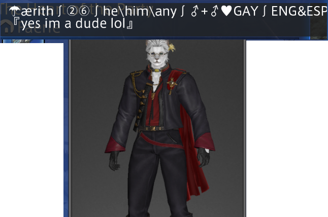 >>555103484My lalaboy is guilty of nothing except wordlessly leaving parties after three wipes failing to reach the prog point, which I personally consider more polite than the passive-aggressive "tyfp" some people drop before doing so