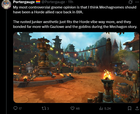 its quite funny how on paper, the Horde is supposed to be the 'accepting, tolerant of outcasts' faction, but all the troons play Alliance.