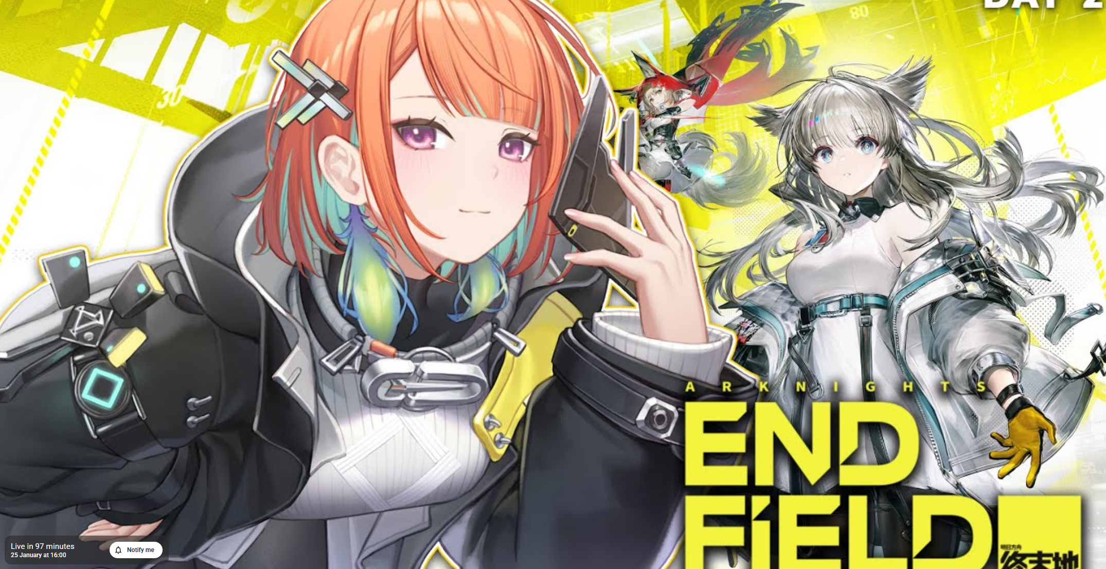 Previous thread: >>555109660>Official Websitehttps://endfield.gryphline.com/en-us>Official EN X (NEWS HERE)https://x.com/AKEndfield>Chartered Headhunting ScheduleJanuary 21st to February 7th --- "Scars of the Forge", (Laevatain)February 7th to February 24th --- "The Floaty Messenger", (Gilberta)February 24th to March 13th --- "Hues of Passion", (Yvonne)>Launch Reward Codes (Valid until January 29th)RETURNOFALLALLFIELDENDFIELDGIFTENDFIELD4PC>Twitch Dropshttps://endfield.gryphline.com/special/third-party-binding?channel=twitch>Voyage to the Stars (Ongoing until March 4th)https://endfield.gryphline.com/activity/voyage-to-the-stars/en-us/>Special Launch Streamhttps://www.youtube.com/watch?v=dz2g_D52NR0>Official Release Trailerhttps://www.youtube.com/watch?v=oJ00ggFb8A0>Official Release PV'shttps://www.youtube.com/watch?v=5Xm45NwWOlohttps://www.youtube.com/watch?v=UPpeeft1-8ohttps://www.youtube.com/watch?v=tN80M6IEMo0>Wikishttps://wiki.skport.com/endfield (Official)https://perlica.moehttps://warfarin.wiki/enhttps://endfield.wiki.gg/>Blueprint Guideshttps://talospioneers.com/en>Stickershttps://drive.google.com/drive/folders/13KH3L6QPIKkVH7pBddv4uxwmwJsnOtklhttps://drive.google.com/drive/folders/1OuVtjv1k-9c3M6n7d4PX3CGG5bkwH04ahttps://drive.google.com/drive/folders/1AStB8bzFk3lSwMwczWPkFYCBrZe0vHOghttps://drive.google.com/drive/folders/1yS0lqUhxf8tBRtpDFfCU1y16IS2sSeF7