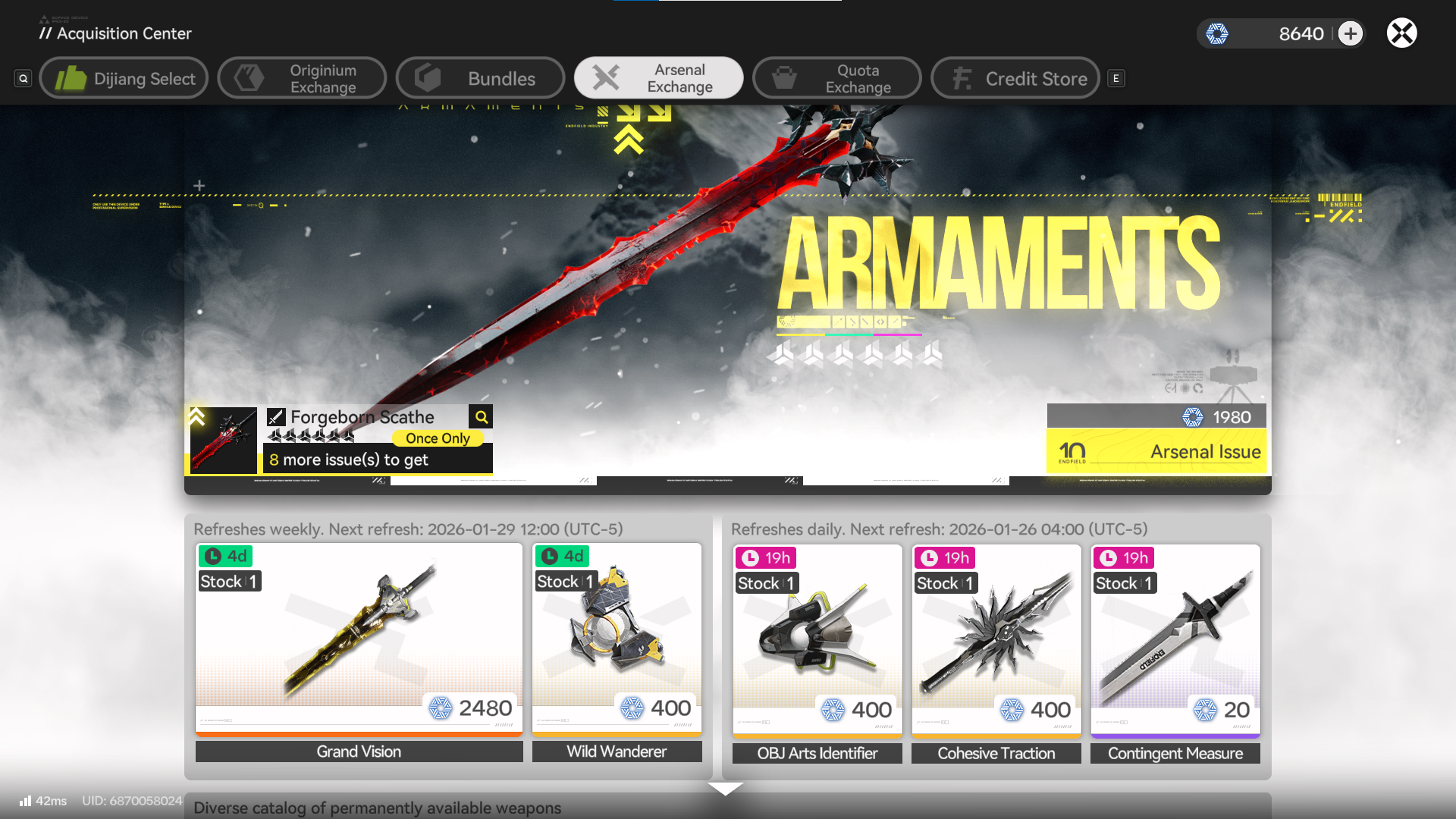Do we have a leak on the 6* weapon's weekly schedule? I want to get Pog's sword.