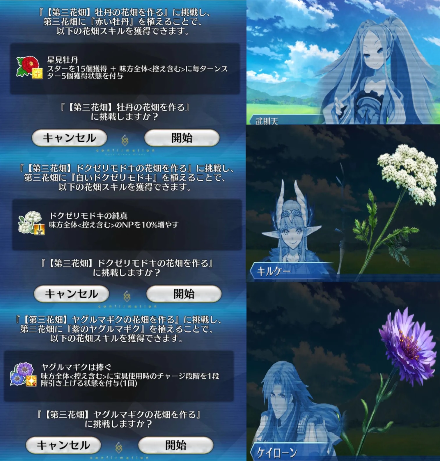 -The Flower Garden Skill would change depending on the quest you choose.
