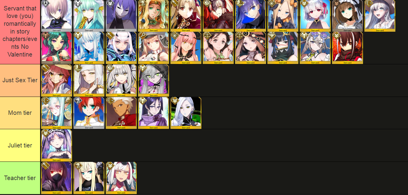 The only reason they exist is to cause arguments as some guy tries to force his opinion as fact, often with shitpost results as he chooses certain ones on the list purely for the purpose of shitposting, with a girl literally saying she loves you in game being listed as "not for you at all" because the one making the list "isn't into that", and another girl who isn't treated as for you being at the top because the list maker "likes her", the entire point of the lists is to be often biased to start pointless arguments.