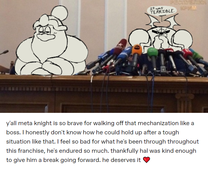 >>555200357*an evil creepypasta kirby. Anyways, my idea was “what if nightmare was still around and trapped kirby and his friends in a bad dream” with these two being nightmares of haltmann and sectonia