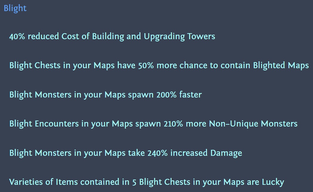 >Future Nostalgia now has "Herald of Agony has 150% increased Buff Effect" (previously 100%), and now also has"+80% to Chaos Resistance while affected by Herald of Agony" (previously 75%)