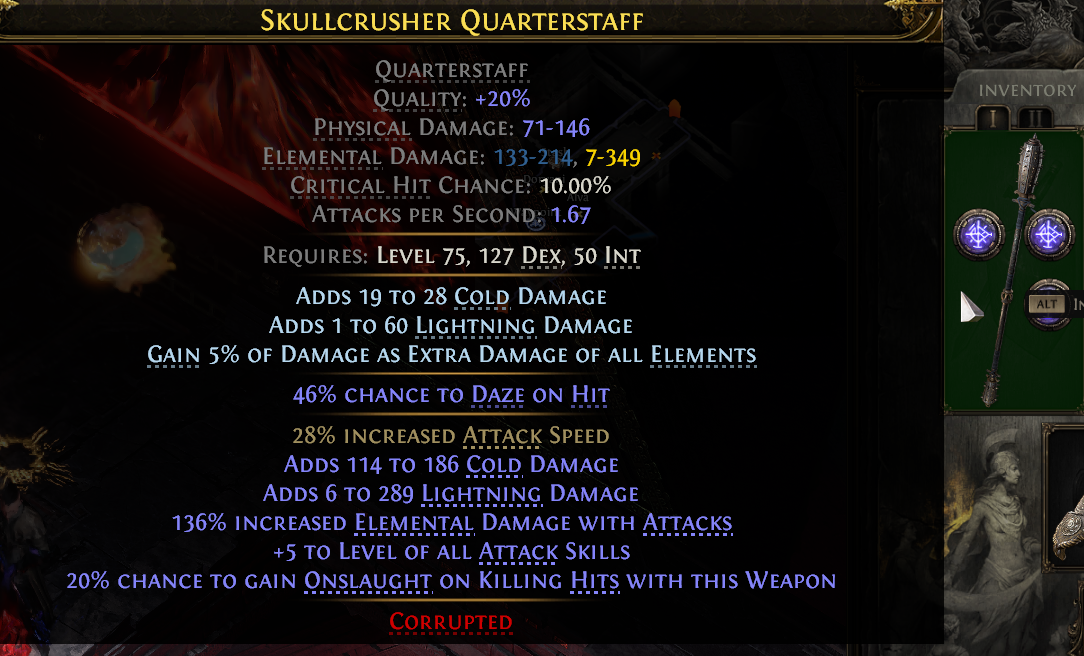 >Dreadful Attitude now has "8% increased Damage per 5 of your lowest Attribute" (previously 5%) and now also has "Items and Gems have 50% increased Attribute Requirements" (previously 25% reduced)